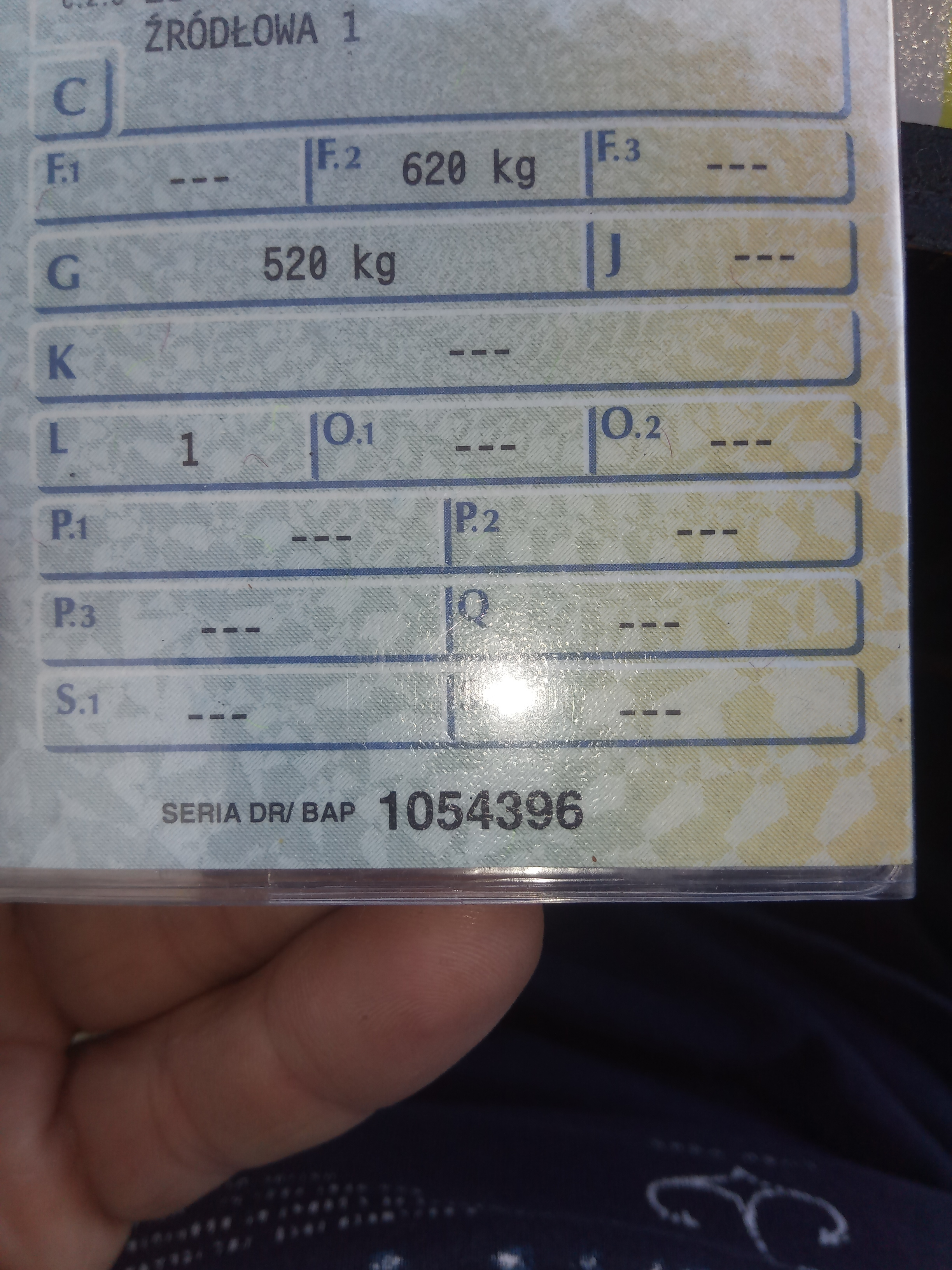 Brał pod uwagę dane z tabliczki na której podane są masy auta.