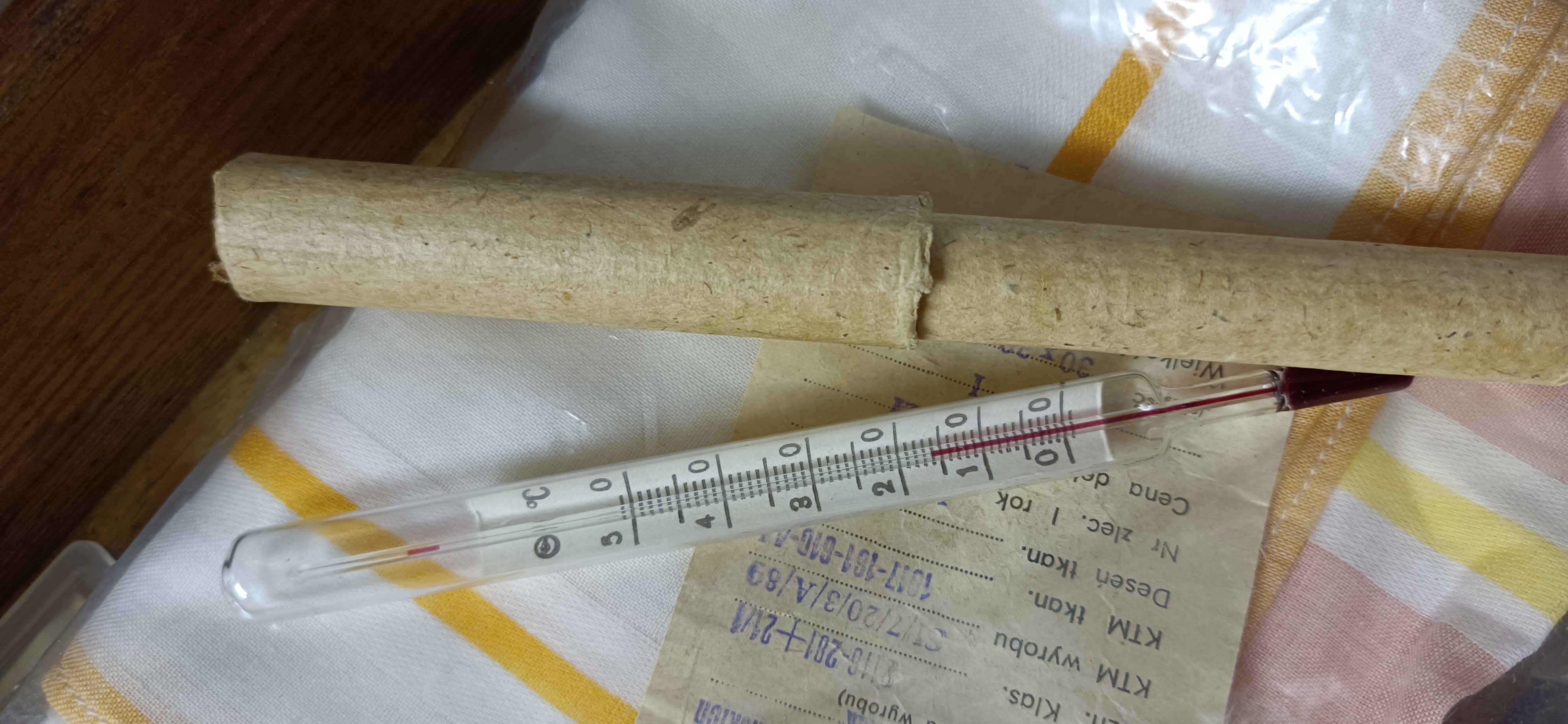 Niezniszczalny szklany termometr, niestety już alkoholowy