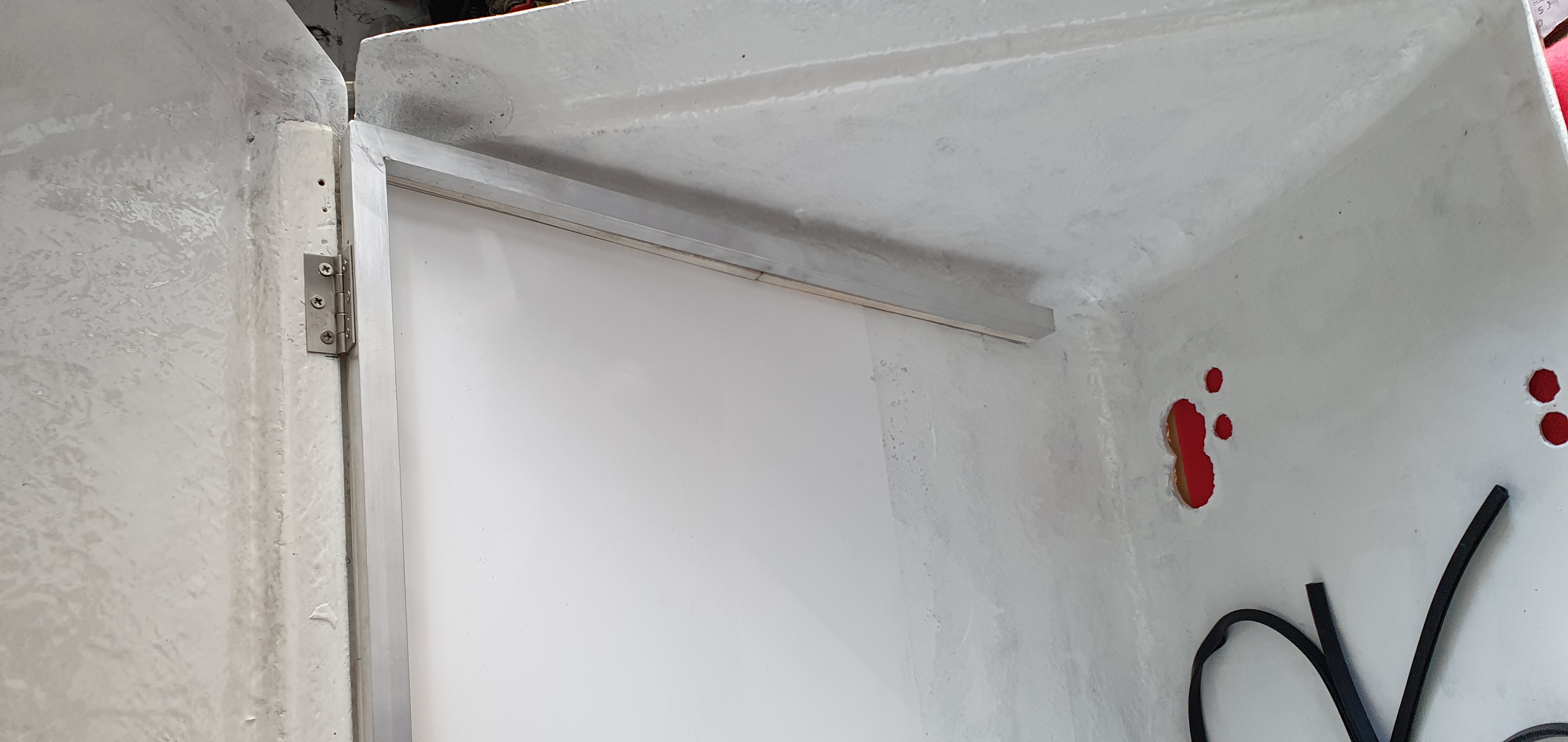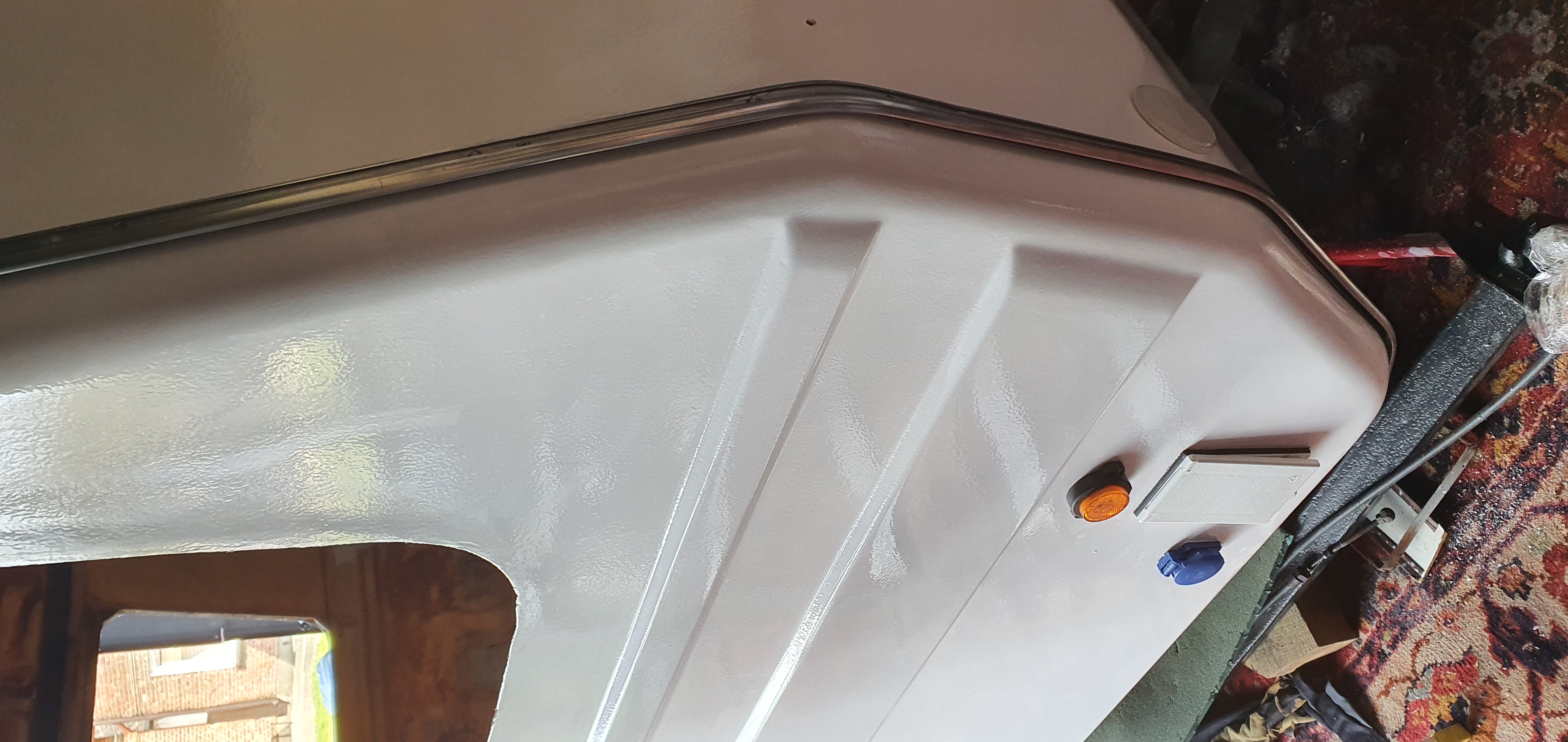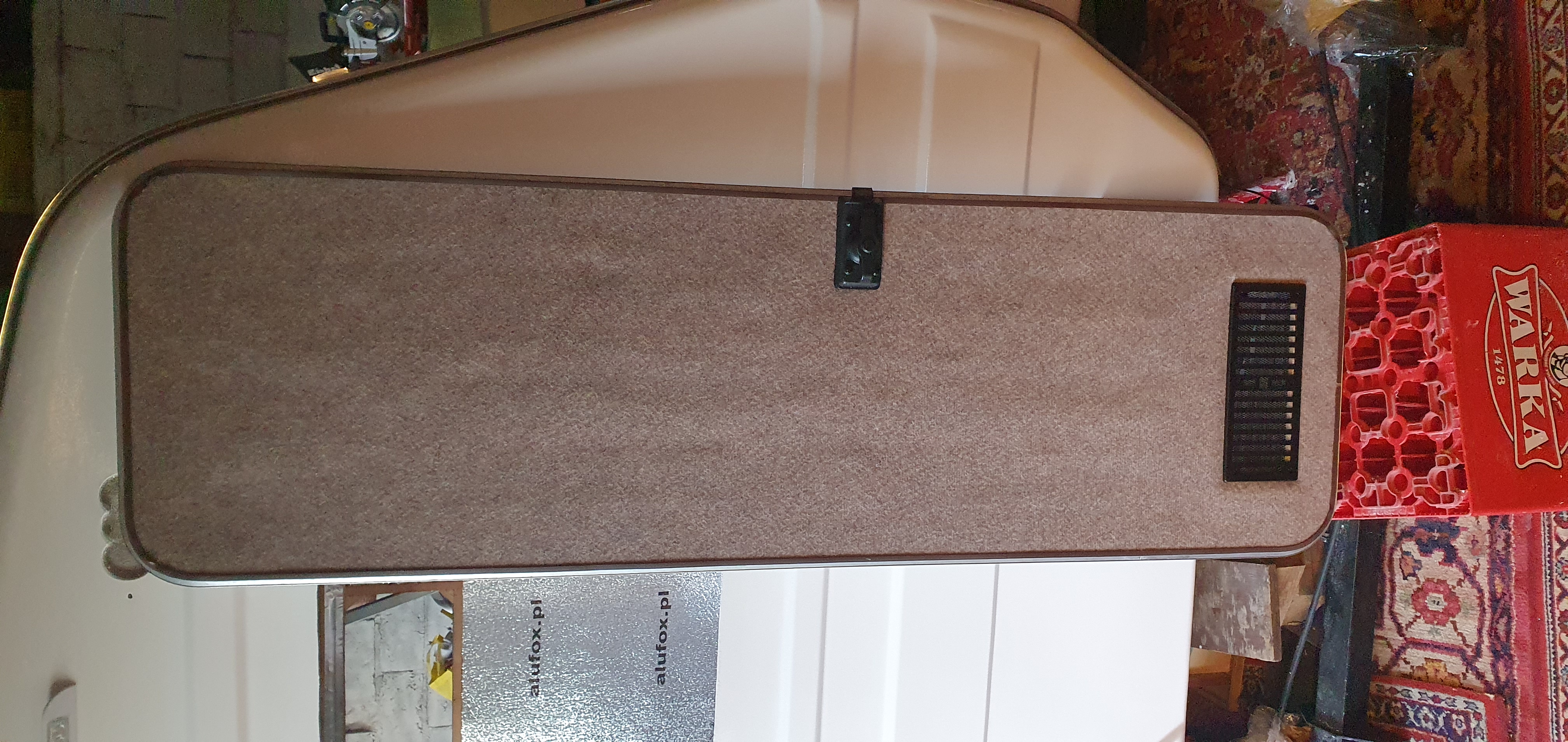 Buda nabiera wyglądu. Chciałem zachować oświetlenie oryginalne więc tylne lampy zostały od Ursusa, przednie i boczne kształtem nawiązują do PRL, całość firmy WAŚ, oczywiście ledowe. Oświetlenie tablicy ori zostało przerobione i też jest ledowe, wyciąłem moduł z lewej lampy tylnej. Listwy zamontowane na taśmie butylowej 20x2, śruby M4x15 z nierdzewki, nowe otwory, uszczelnione wszystko Sikaflexem. Na bocznej ścianie zamontowałem gniazdo 230V i gazowe. W środku nie będzie kuchenki, gotujemy na zewnątrz. Panel montuję na dwóch profilach alu 40x20 przykręconych do dachu śrubami M6x60 w miejscach listew na centymetrowych dystansach aby zniwelować nierówności wręg. Zastanawiam się czy wręgi łapać śrubami do profilu, na pewno wzmocniłoby to dach. Ościeżnica drzwi również na taśmie butylowej 15x1, wkręty w nowych otworach.