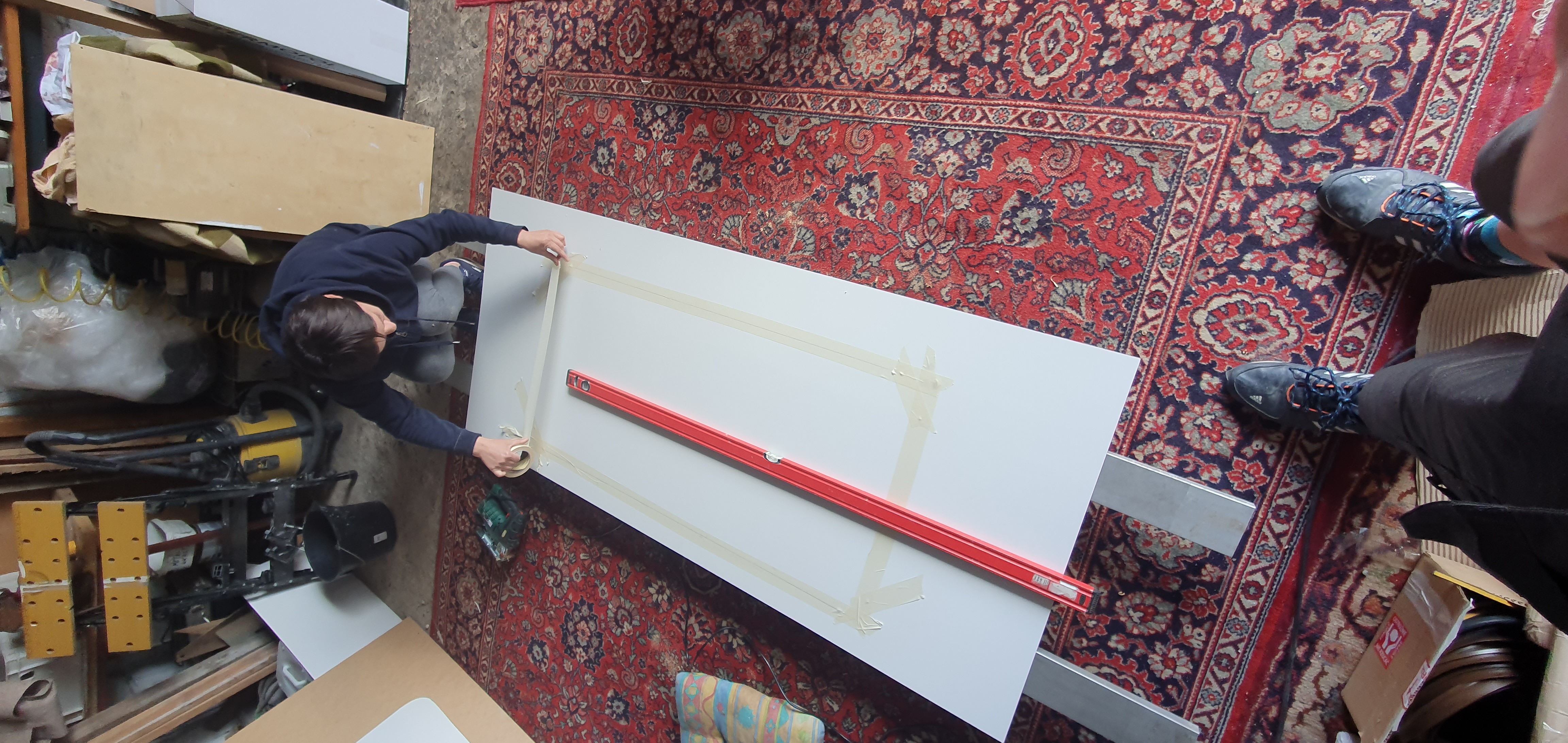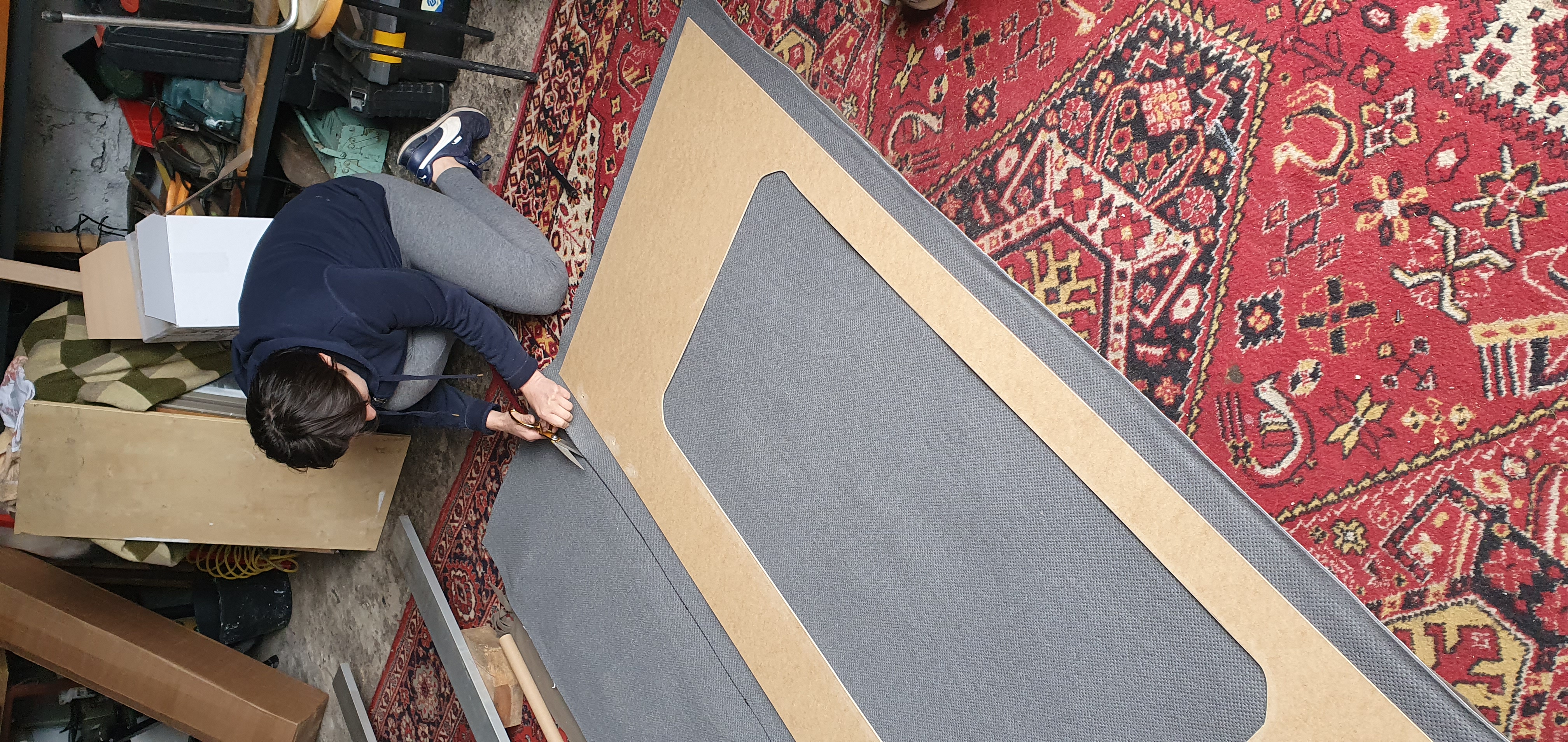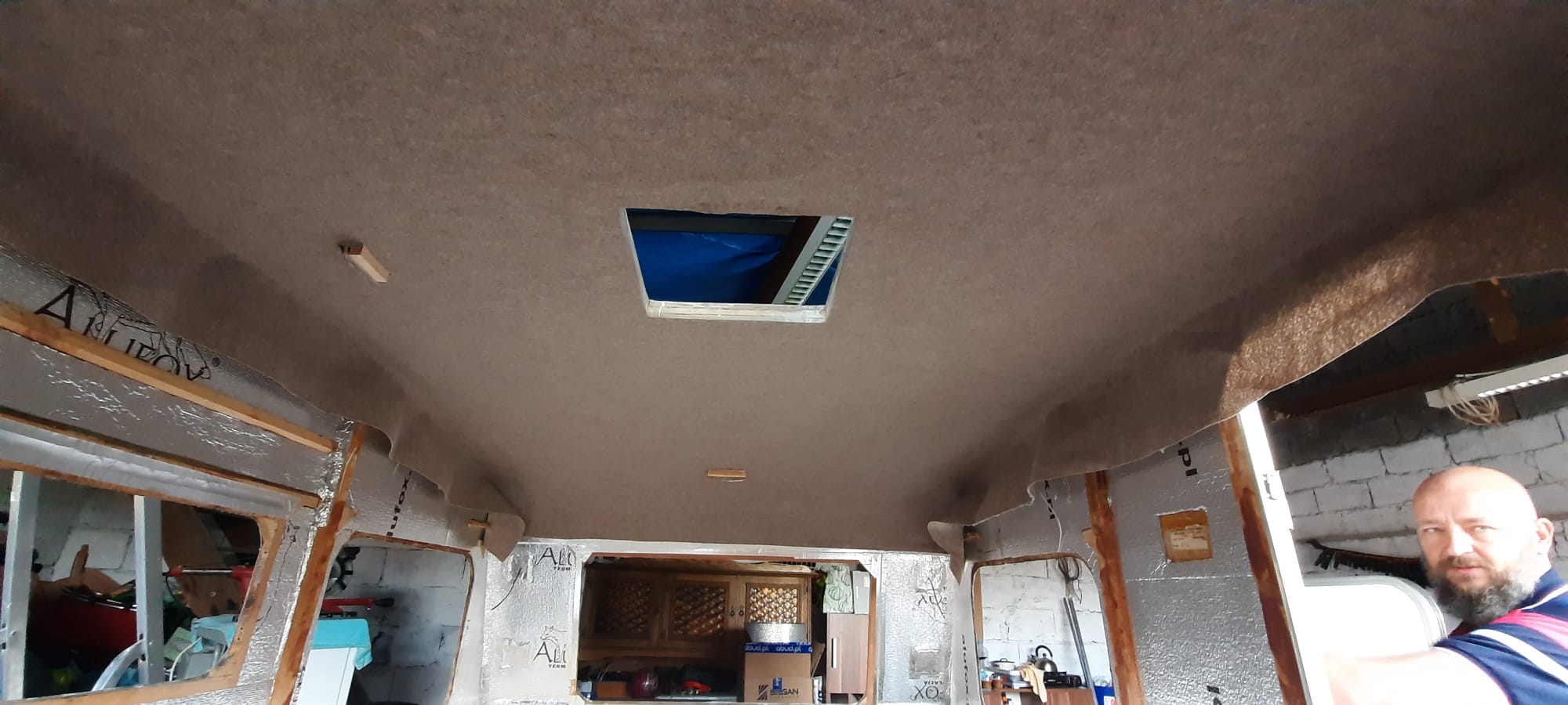 Dzień spędzony na zaklejaniu łączeń izolacji i przyklejaniu największego płata tapicerki. Tym razem bez pędzla