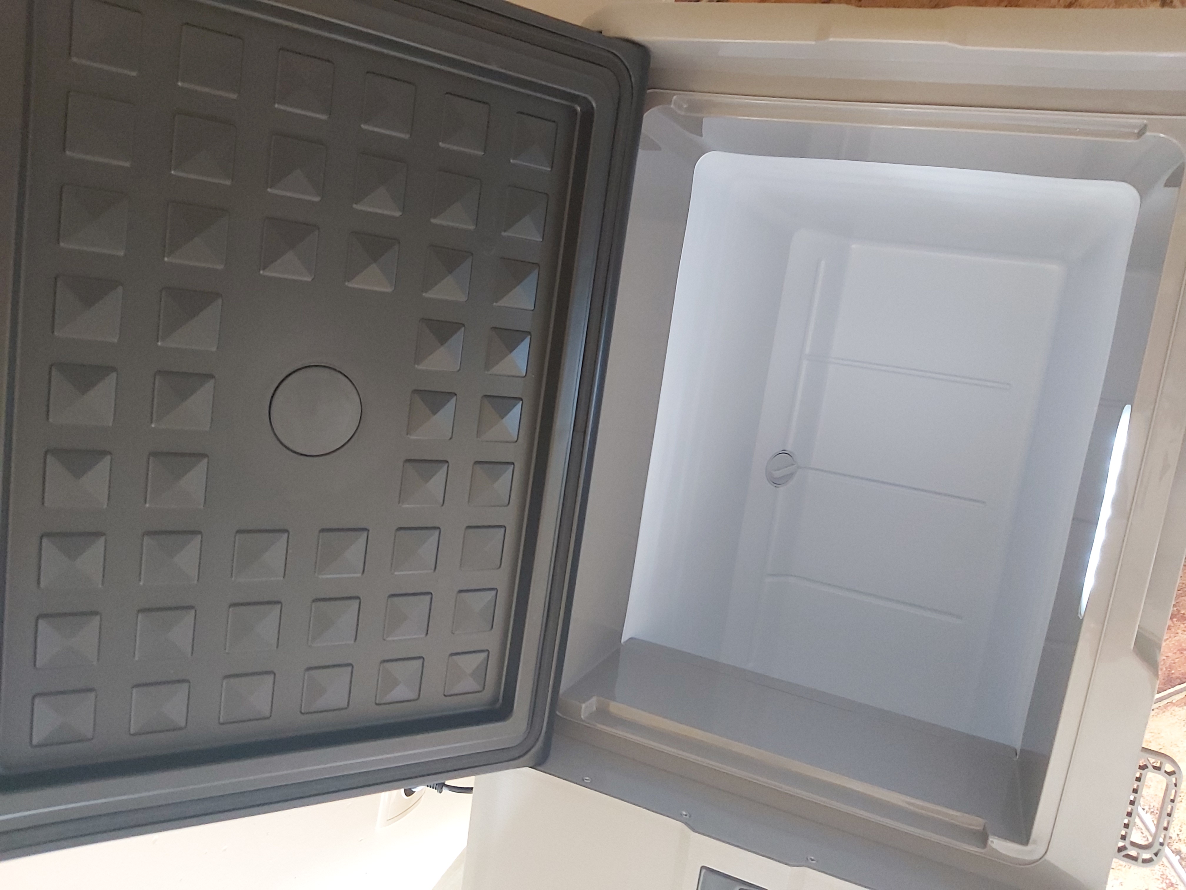Lodówka przenośna Vigo Cool V62W 62l 60W z baterią. Pasuje mi bdb do T4 jak wyciągnę jedno siedzenie. Bardzo sobie jak na razie chwalę.