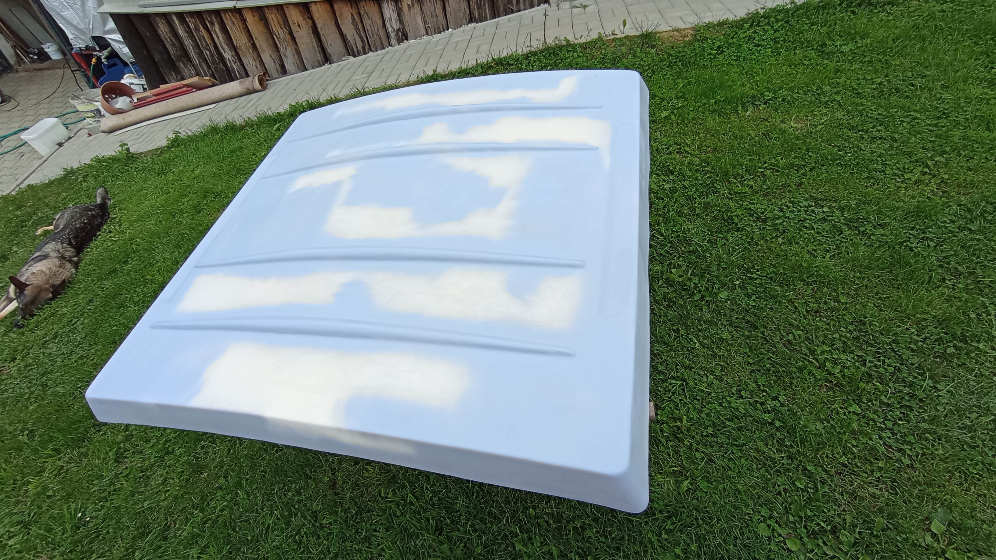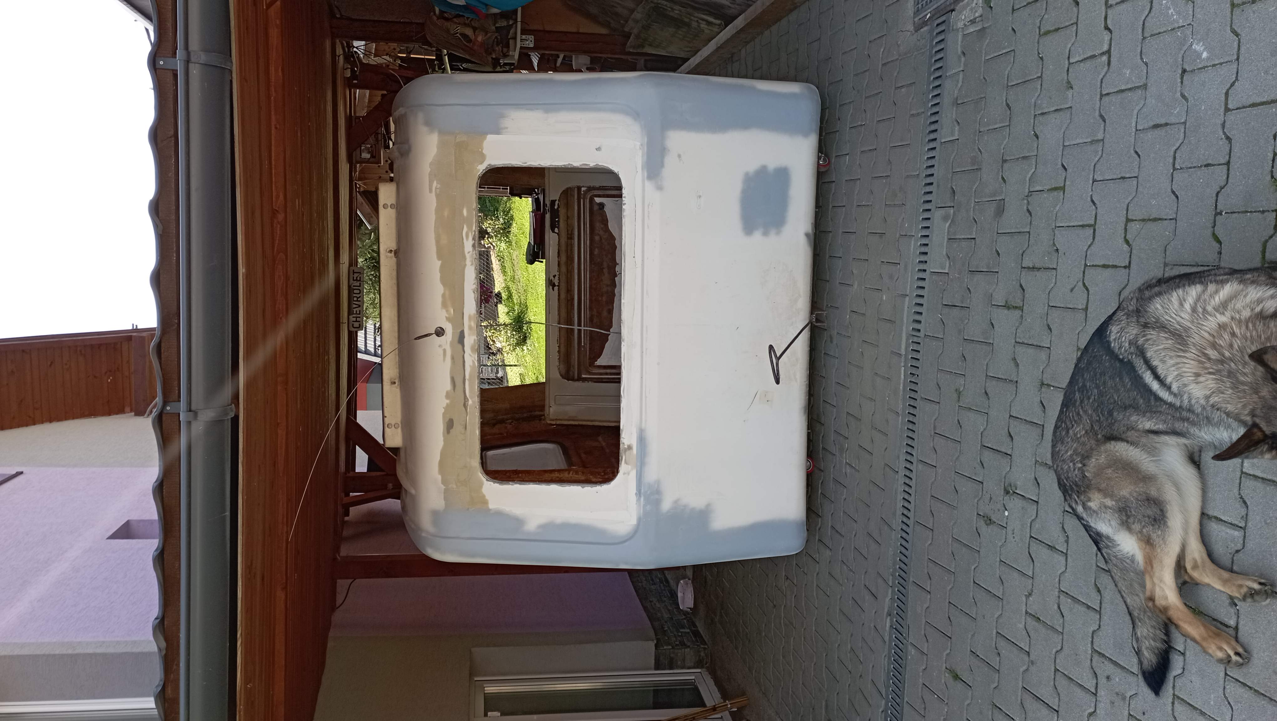Witam, przede wszystkim dziękuję za przyjęcie. Przedstawię się pokrótce. Mam na imię Piotr i pochodzę z północy Słowacji, moim marzeniem jako 10-letniego chłopca było posiadanie tej przyczepy z laminatu. W końcu się do tego zabrałem. Początkowo planowałem jechać, ale po sprawdzeniu podłogi znalazłem nieszczelność, więc zacząłem odkrywać i czyścić wnętrze, a następnie kontynuowałem renowację karoserii i zdecydowałem na kompletną renowację. Ponieważ nie podoba mi się tak bardzo wygląd oryginalnego oświetlenia, zastąpię je zupełnie nowym o prostokątnym wyglądzie.