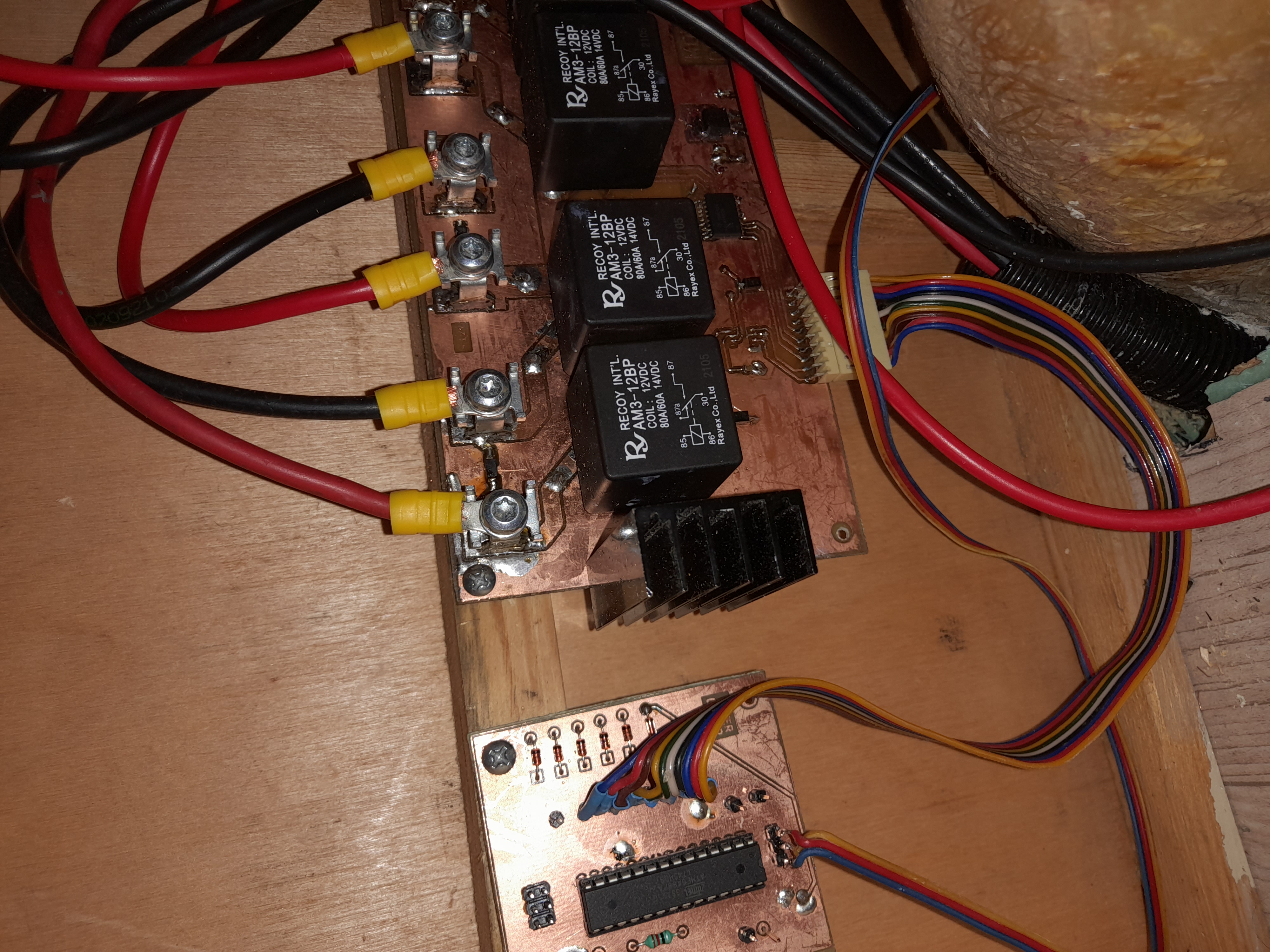 A to jest "mózg" centralki z mikrokontrolerem przetwarzającym rozkazy z manipulatora na sygnały sterujące przekaźnikami i softstartem.