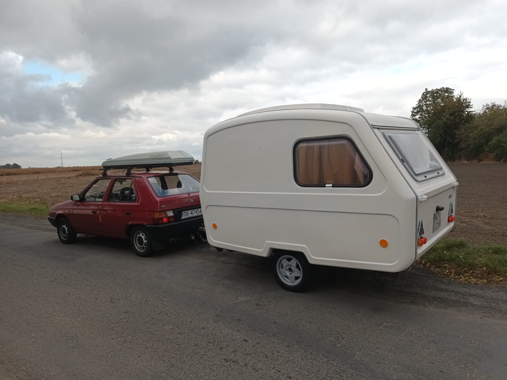 Wybebeszona cała, wyczyszczony szczotą drucianą cały środek, podłoga polepiona po obu stronach żywicą z matą i wewnątrz pomalowana na biało olejną a na zewnątrz dwukrotnie cobrą novola, oś wyczyszczona i pomalowana na czarno, wszelkie ubytki z zewnątrz zaszpachlowane a od wewnątrz wzmocnione również matą i żywicą, tak samo zaklejone wszystkie otwory po listwach zewnętrznych (będą wiercone nowe bo stare wyrobione), cała od zewnątrz przeszlifowana do lakieru (cobra novol ral 9003), wklejone nowe ramy okienne przód i tył, wklejone nowe listwy podłogowe, podłoga docięta na wzór starej, naszykowana instalacja 12v do oświetlenia wewnątrz (zrobiłem 5 punktów) kabel 2x1, do włączników 3x1, do gniazdek 230v 3x2.5, do 12v będzie wykorzystany zasilacz komputerowy po małej modyfikacji, aluski wypiaskowane i pomalowane proszkowo (borbet 4x98), nowe opony. Na urlop już raczej nie zdążę, ale myślę że jeszcze na weekend jakiś w tym roku pojedziezdjęcia jak mi się jakoś uda to wrzucę bo nie pamiętam jak. Po za tym kupione taśma butylowa, wszystkie uszczelki, kliny, odblaski uchwyty, rączki itp.