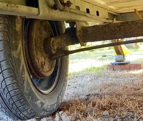 1. Dojechana/wyrobiona stara oś, która już siadła przez wyrobione gumy