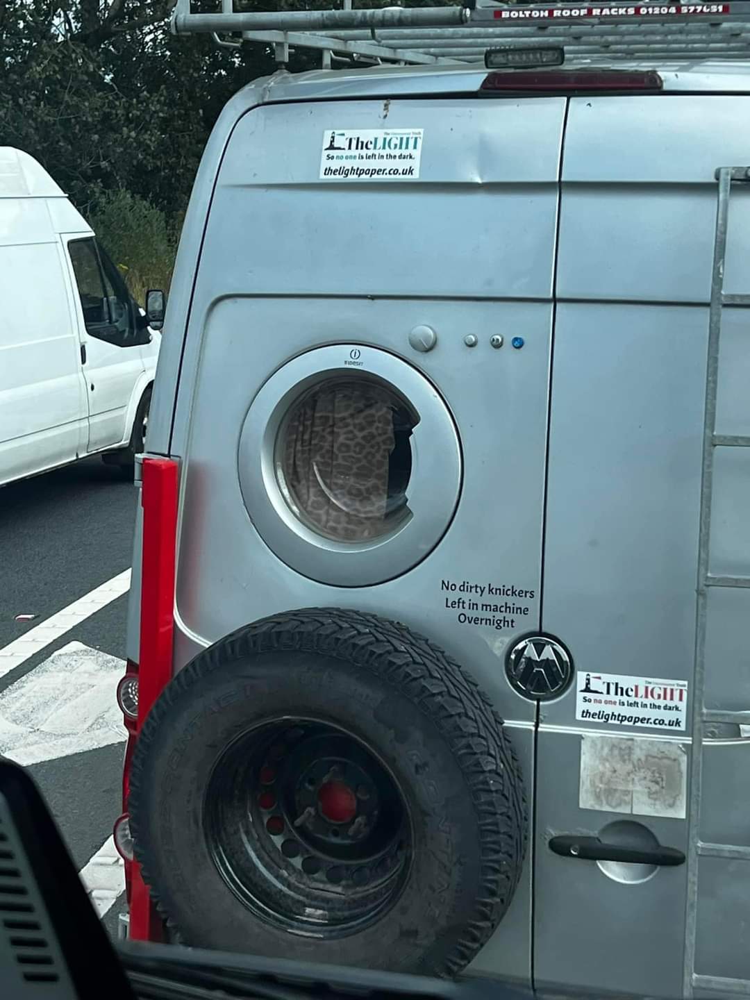Panel uchyla się tylko w jednej płaszczyźnie więc szału nie ma. Zwraca natomiast uwagę brak tylnych świateł na przyczepie, są tylko na bagażniku rowerowym a to jak mniemam wbrew przepisom. Pomijam fakt całkowity brak zdjęć środka.