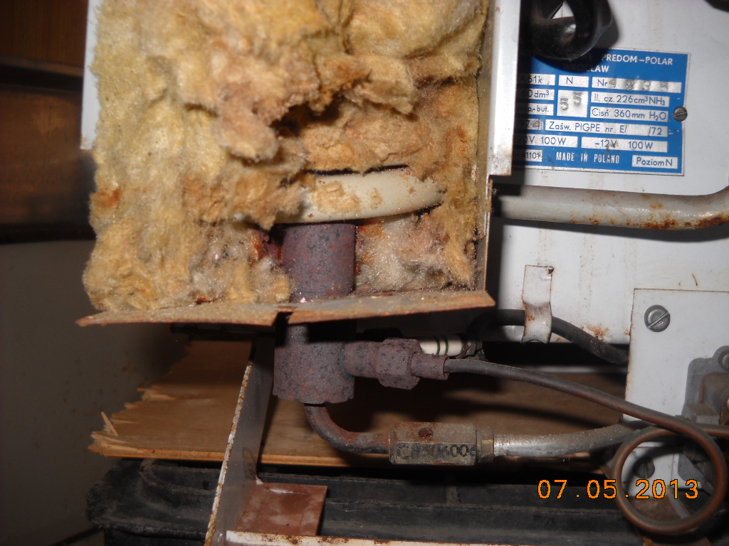 Po rozpakowaniu całego układu zauważyłem że ktoś ( chyba monter w fabryce lodówek ) tak dokładnie napakował tej wełny że odizolował również kominek od wężownicy. I chyba dlatego lodówka nie chłodziła na LPG. Piszę chyba bo teraz działa od godziny i zaczyna być dobrze . Wężownica zaczyna być ciepła , więc jest nadzieja.
