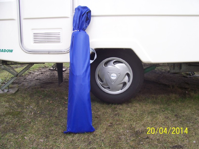 Przestało padać to założyłem niedbale daszek p. słoneczno-deszczowy w/g mojej opinii doskonale się sprawdzi zarówno w ciepłych krajach jak i na krótkich postojach w naszym klimacie ( nieprzemakalny ) zaleta to błyskawiczny montaż , leciutkie aluminiowe rurki możliwość dopięcia bocznych osłonek ( po 4 remizki na bok ) i wszędzie można go schować .Przepraszam za datę zdjęć o miesiąc do przodu