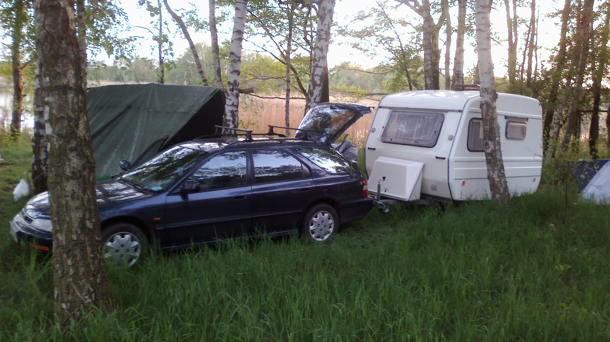 Wyjazd w środę 30 kwietnia w południe .Miejscowość ulubione jeziorko Jeżyn . Ja ,syn ,siostrzeniec i koleś z pracy . Pogoda średnia raz była kąpiel w jeziorku .Padało w piątek , dobrze że miałem plandekę :!: . Ognisko obowiązkowo siedzieliśmy do północy to było dość chłodno .Zbieranie gałęzi to codzienne zajęcie ale też zrobiliśmy coś dla świata ,raczej coś dla tych wieśniakow co przyjeżdżają nad jeziorko a także tzw wędkarzy . Zebraliśmy 5 worków śmieci z wody i brzegu na odcinku 40 metrów .3 szt 120 litrów i 2 mniejsze . Zostawiłem je na przystanku autobusowym niech widzą miejscowi .Troszkę rybek złowiliśmy ale darowano im życie taki wyjazd w zgodzie z naturą :) czyli bez zabijania dużo powietrza i zielonego :wink: . Kilka fotek .