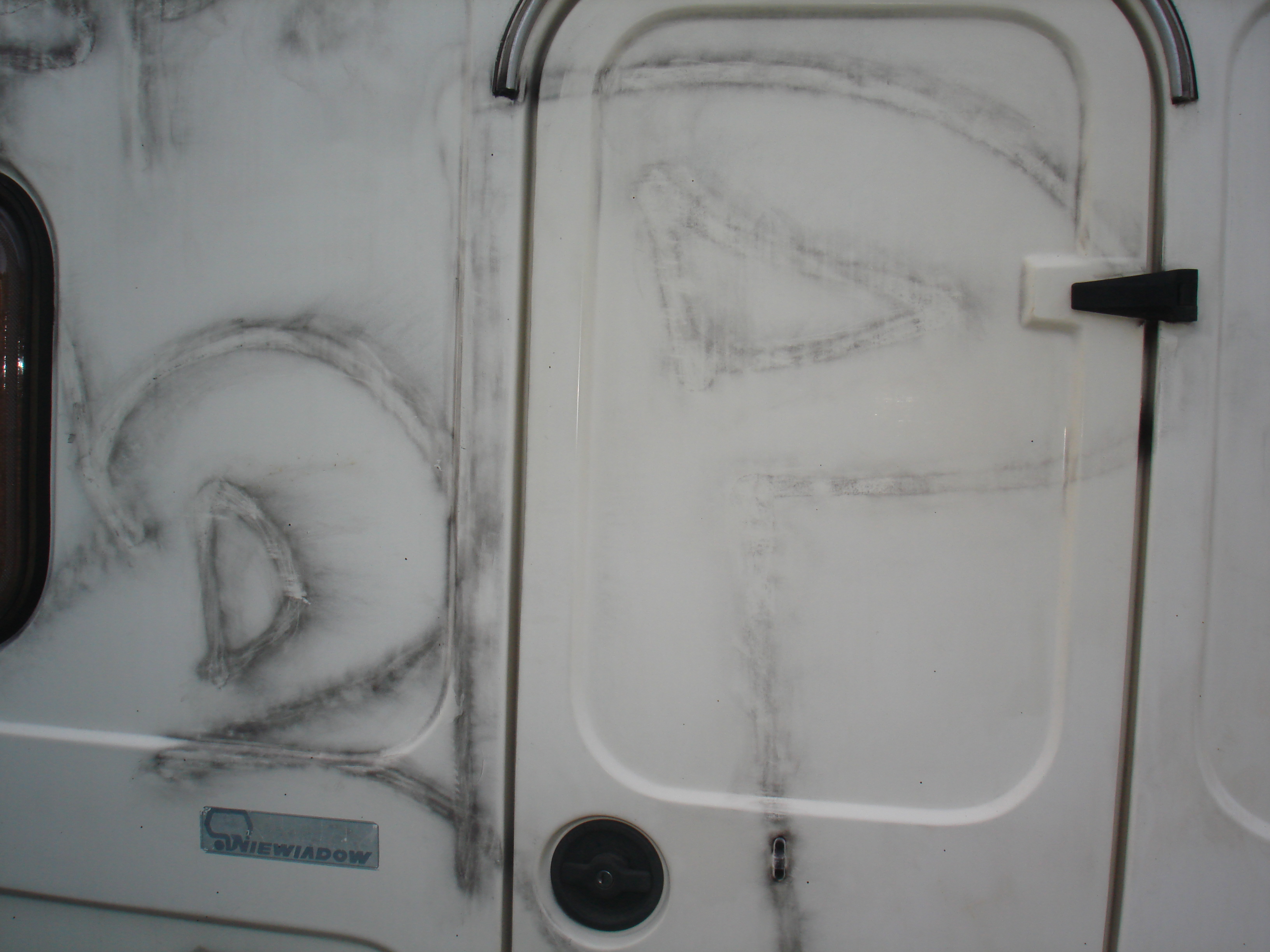 No ale do rzeczy. Wróciłem z weekendu, postawiłem przyczepkę pod kasztanem na podwórku osiedlowym [ wcześniej stała u kolegi przez trzy lata] poszedłem spokojnie do pracy a tu telefon , masz pomalowaną przyczepkę. Po powrocie ujżałem taki oto widok, fotki poniżej.