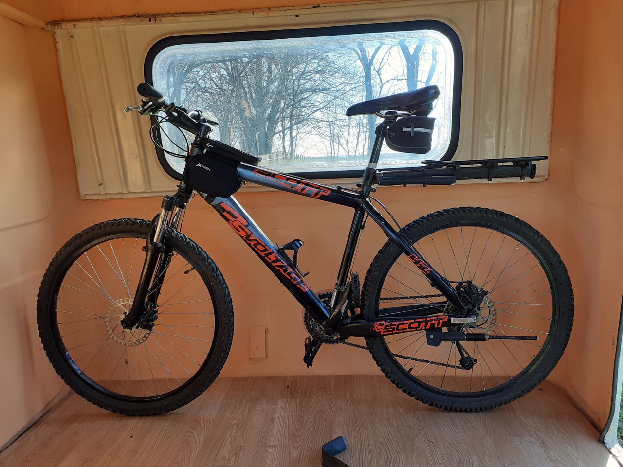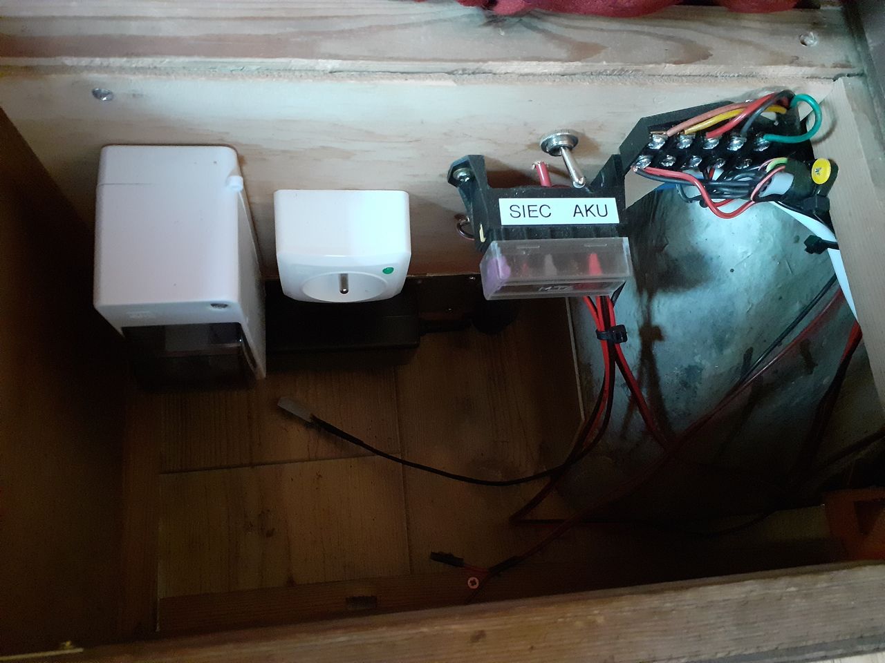 Jeśli chodzi o układ, to trochę wyszedł sam (przednia część mebli była nie do uratowania lub w ogóle ich nie było), a trochę był wynikiem przemyśleń. Szafę chciałem zostawić, łóżko/stół też, lewą podstawę łóżka postanowiłem odciąć na wysokości końca nadkola (równo z szafą) – w ten sposób cały przód przyczepy jest wolny – jest to miejsce do zabawy, ale nie tylko. Na śrubach mocujących budę zamontowałem solidne uszy do mocowania ładunku – będzie tu można zamocować moduł kuchenny (który mam nadzieję zrobić przez zimę), platformę do przewozu rowerów lub położyć na podłodze materac gdybyśmy jechali gdzieś we trójkę.