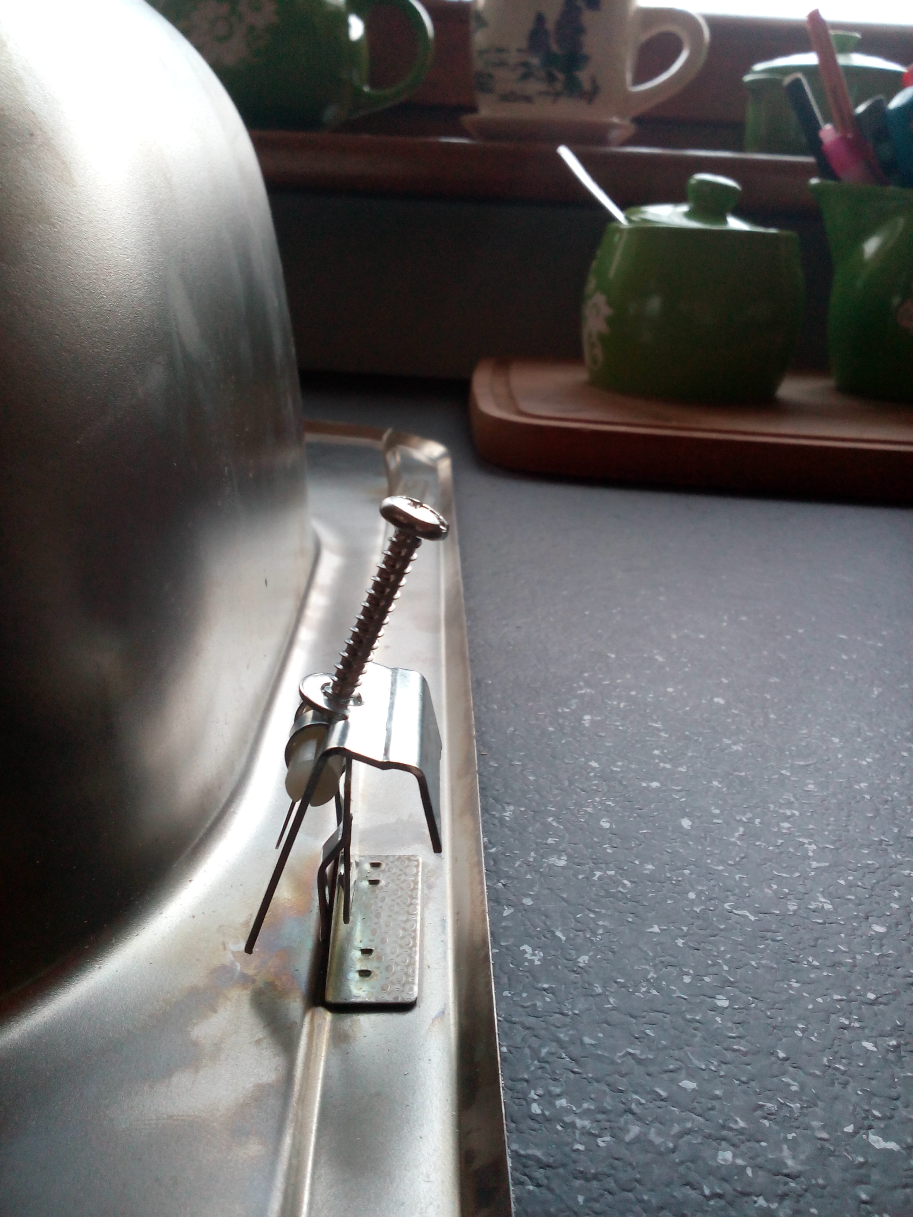 Niestety mocowanie zlewu ( takie zaczepy widać na foto są przystosowane do oryginalnych grubych, kuchennych blatów) mój blat ma grubość 8 mm