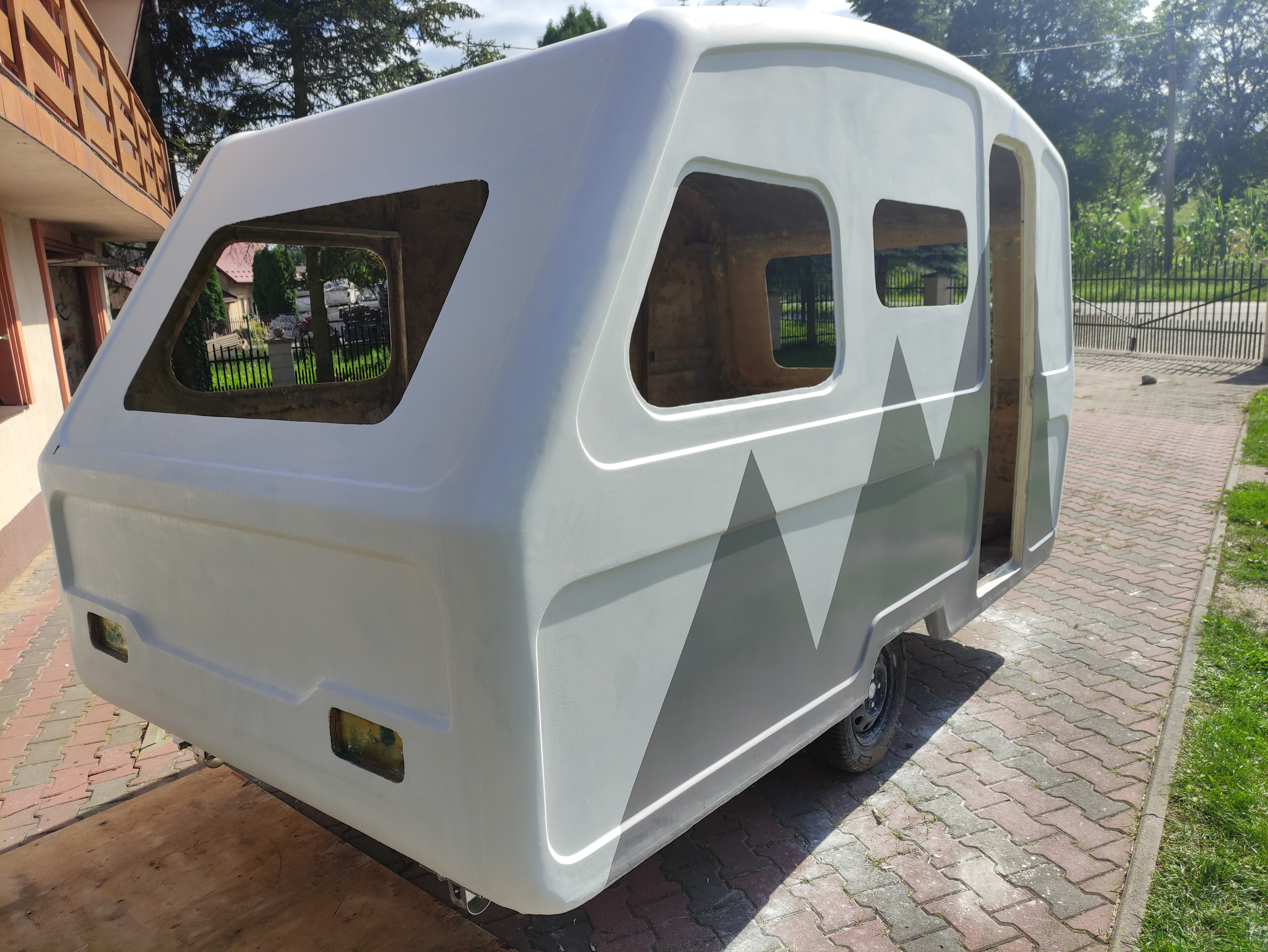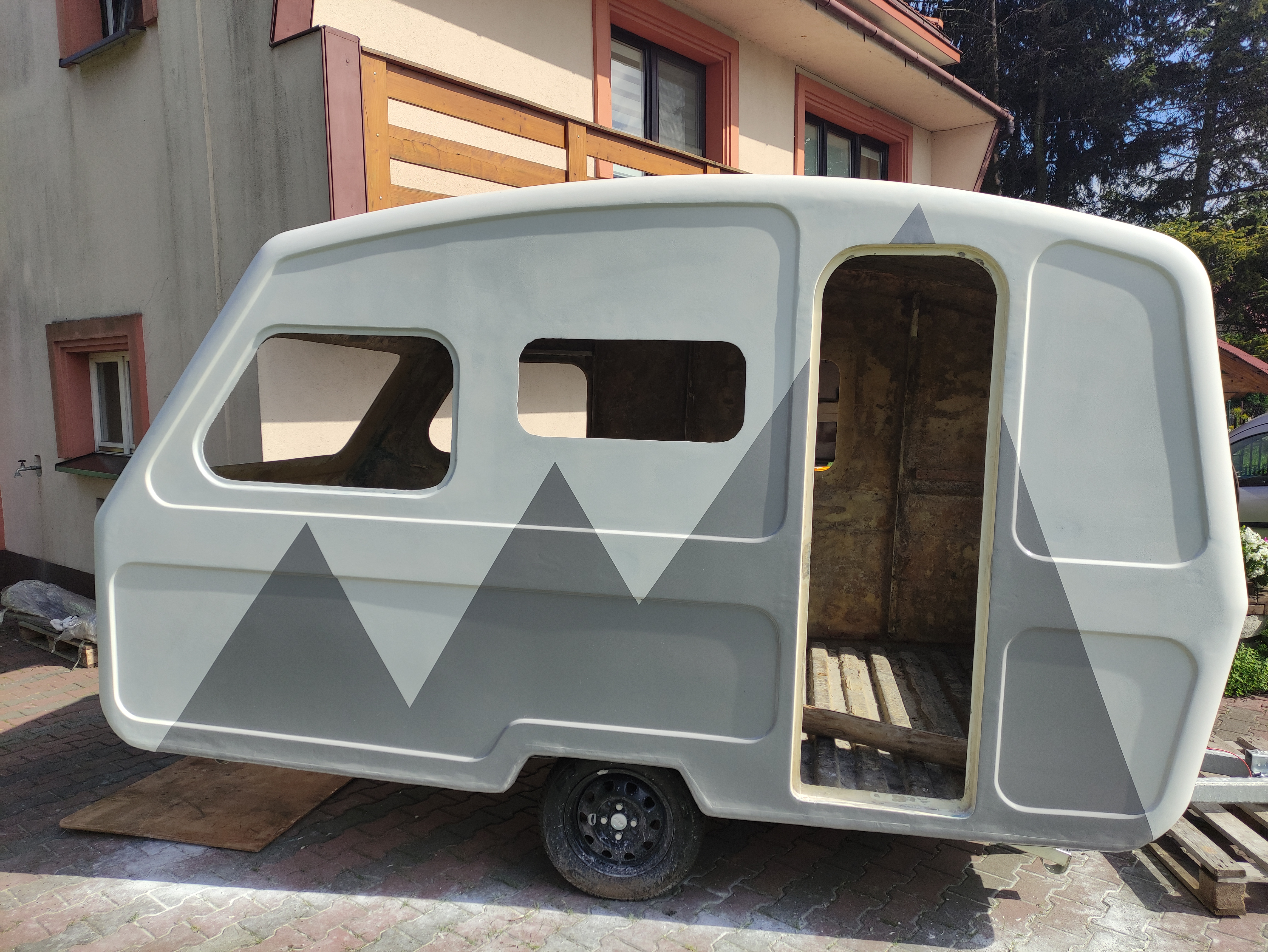 Więc tak, przyczepa pomalowana podkładem epoksydowym 2 razy wałkiem. Wyszło tak sobie, niestety robiłem to pierwszy raz i wiem jakie błędy popełniłem. Po pierwszym razie nie szlifowałem podkładu tylko po 2 razie, to był błąd, farbę słabo rozcieńczylem, walki przeznaczone to tej farby to porażka dopiero 4 wałek okazał się strzałem w 10-tkę. Podkład szlifowałem 600 potem 1200 gradacji papierem. Nie wyszło lustro z uwagi na średnio położony podkład.