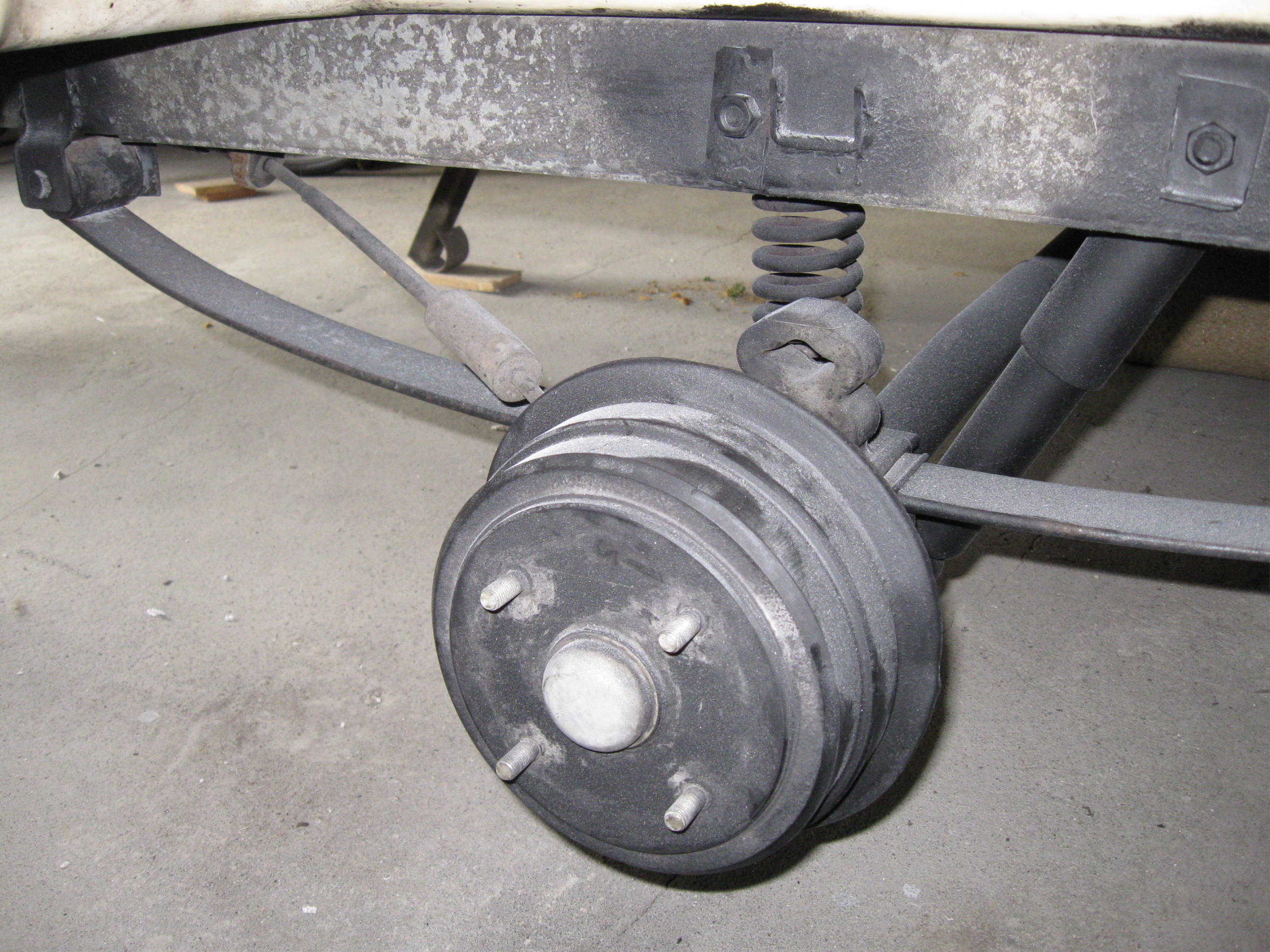Na początek wziąłem się za podwozie.Jako,że poprzedni właściciel już dłuższy czas nie eksploatował przyczepy elementy osi złapały trochę nalotu z rdzy mimo iż przez cały czas przyczepa była garażowana.Element ten nie jest oryginalny-został przerobiony-podobno w Austrii;(i tu miałem problem zaraz po zakupie