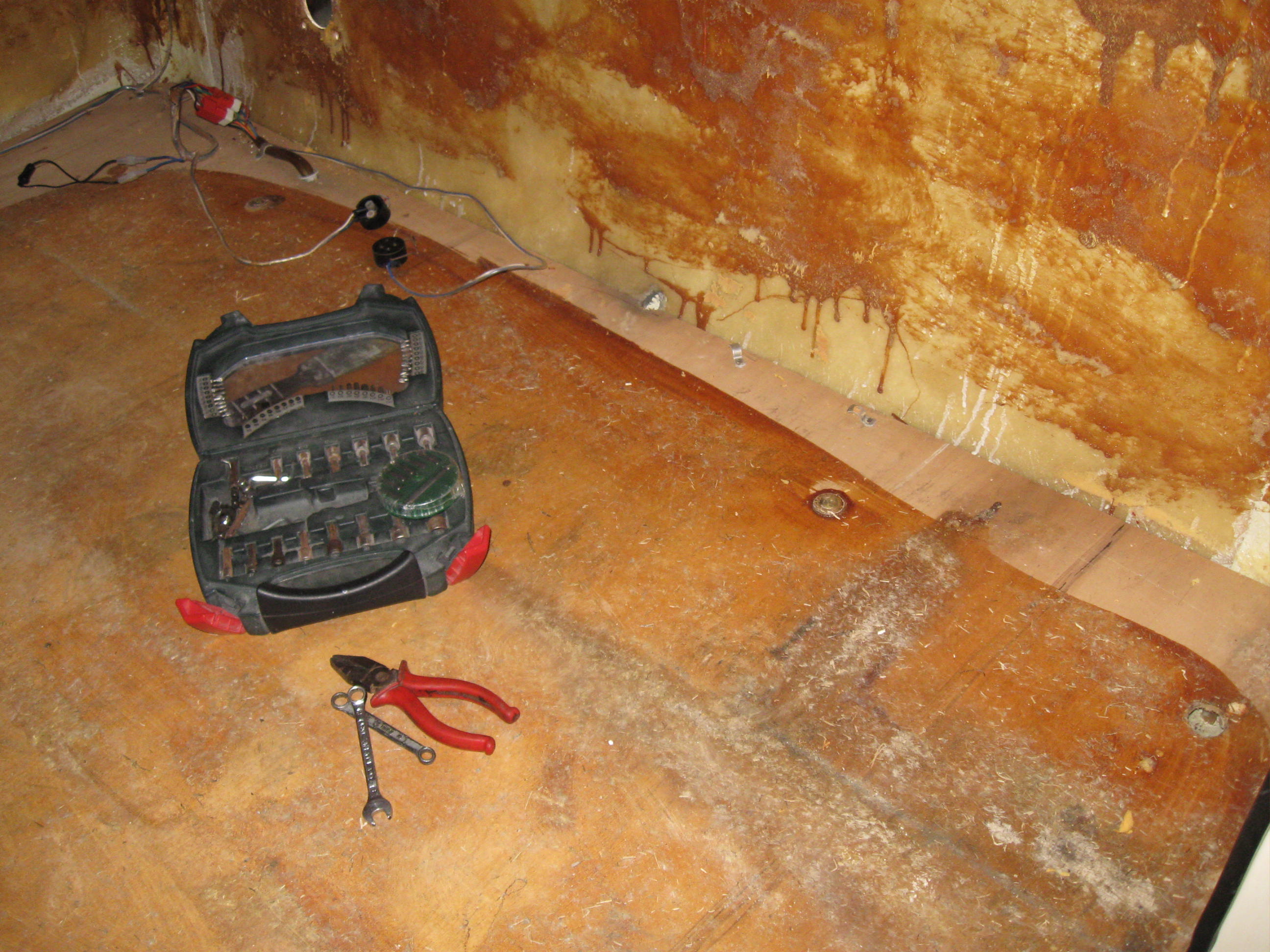 Później przyszedł czas na demontaż wyposażenia i odpadającej tapicerki.Generalnie nie miałem problemów,tylko jeden wkręt mocujący szafkę wymagał użycia siły co zaskutkowało wyłamaniem listwy mocującej,ale to akurat da się łatwo naprawić.