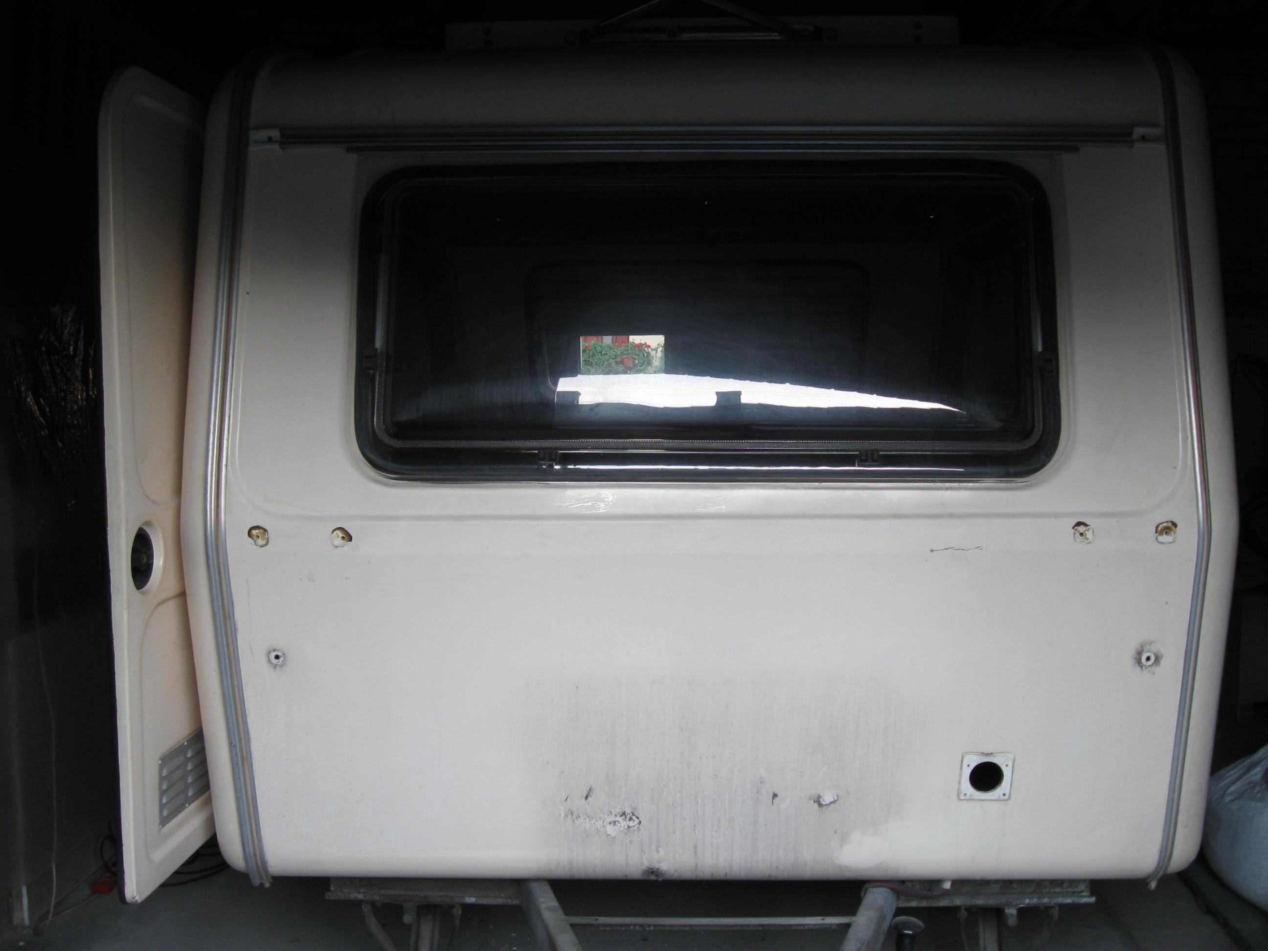 Po "wypatroszeniu" wnętrza przyszedł czas na elementy zewnętrzne.I tu nie miałem większych problemów,tylko jeden z zawiasów drzwi stawiał opór(śruba wykręciła się wraz z wewnętrzną nakrętką zatopioną w obudowie).Dobry klej załatwił sprawę.Obawy miałem przy demontażu okien stałych,ale z drobną pomocą małżonki udało mi się je wydostać w całości.