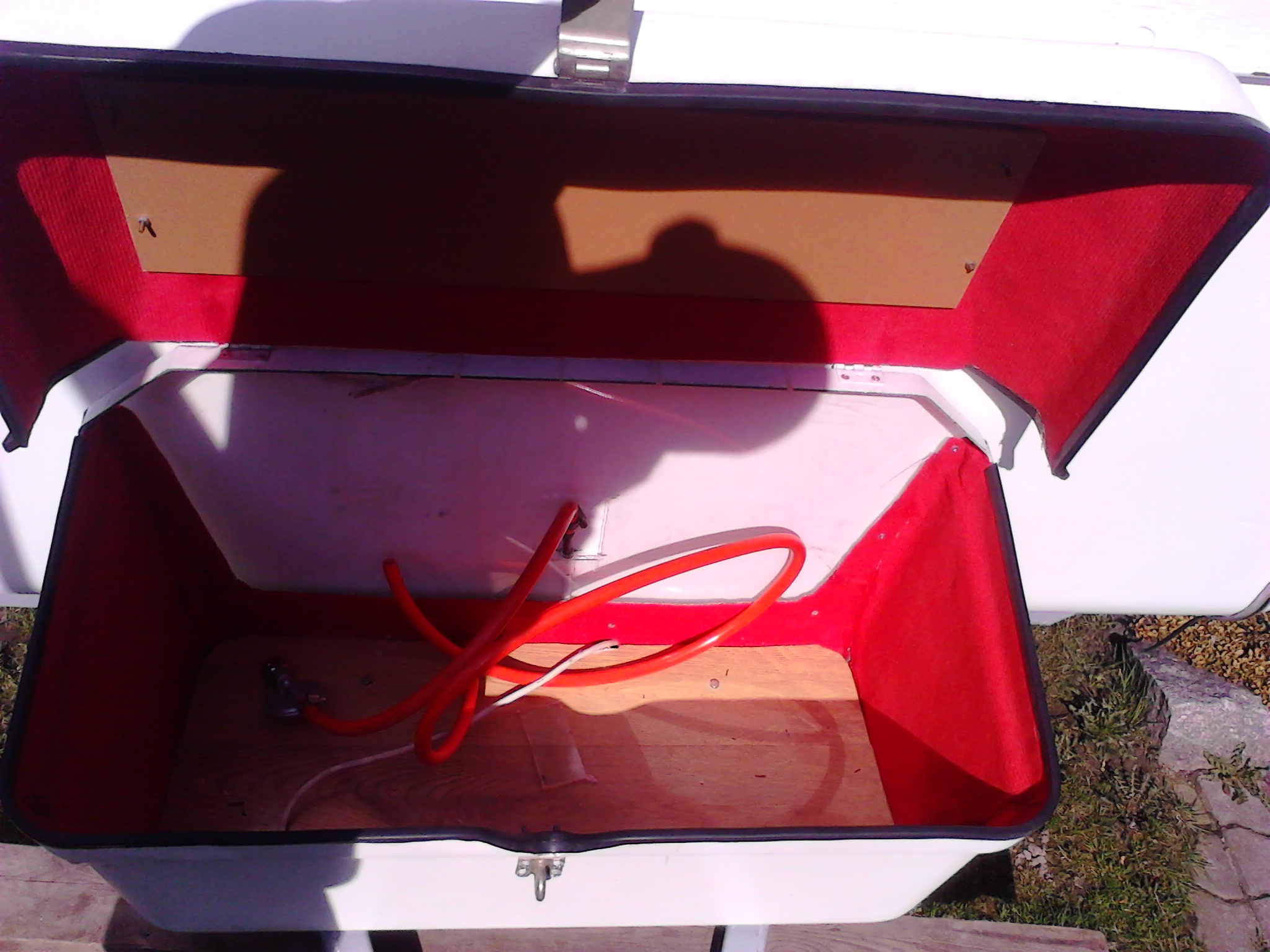 Okleiłem go od wewnątrz wykładziną za pomocą butaprenu i opalarki natomiast podłogę wykonałem z paneli.