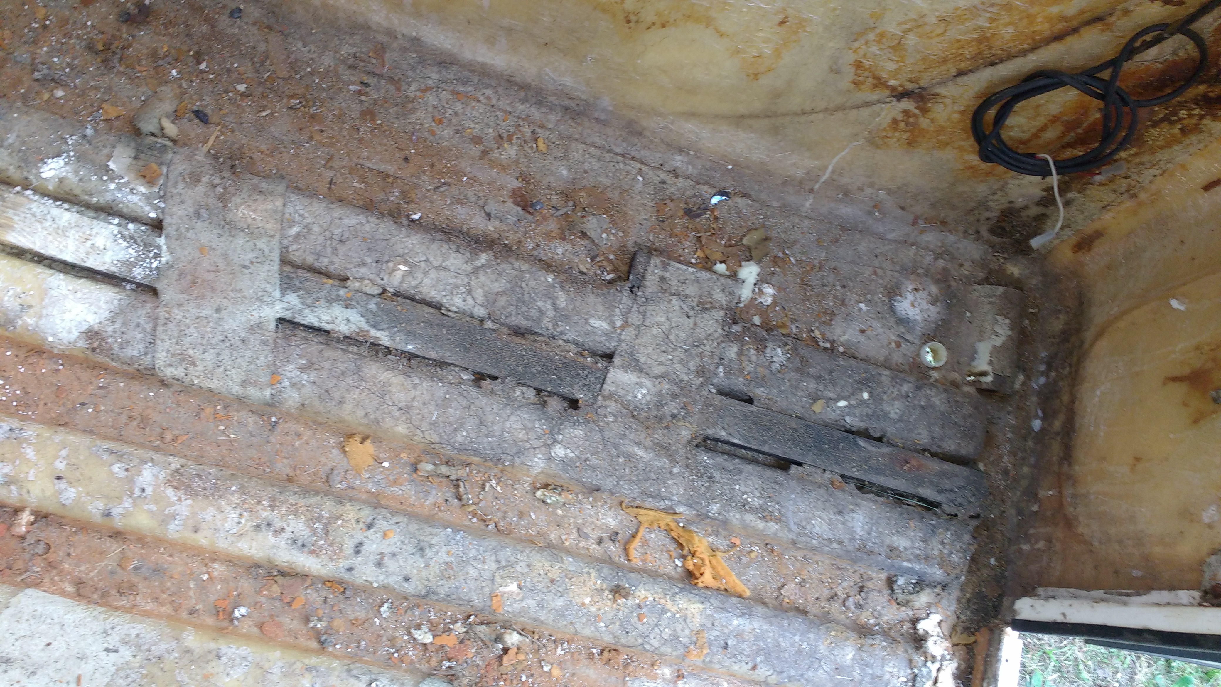 2. Po zdjęciu podłogi pokazał się grzybek. Jedna listwa to jest prawie całkowicie nim przejedzona, leci do wymiany, mam nadzieję, że jakoś bez inwazyjnie ją zdemontuje. Grzyb też pojawił się po długości listw. Cały środek wypucowałem już myjką ciśnieniową, co miało odpaść to odpadło pod jej wpływem i przy pomocy skrobania szpachelką. Teraz mycie benzyną ekstrakcyjną. Myślicie, żeby te miejsca gdzie wyszedł grzyb spryskać jakimś specyfikiem do tego przeznaczonym ? Pomimo tego, że nie ma już tapicerki, mebli i podłogi to w przyczepie nadal utrzymuje się nie przyjemny zapach. Dorzucam zdjęcie.