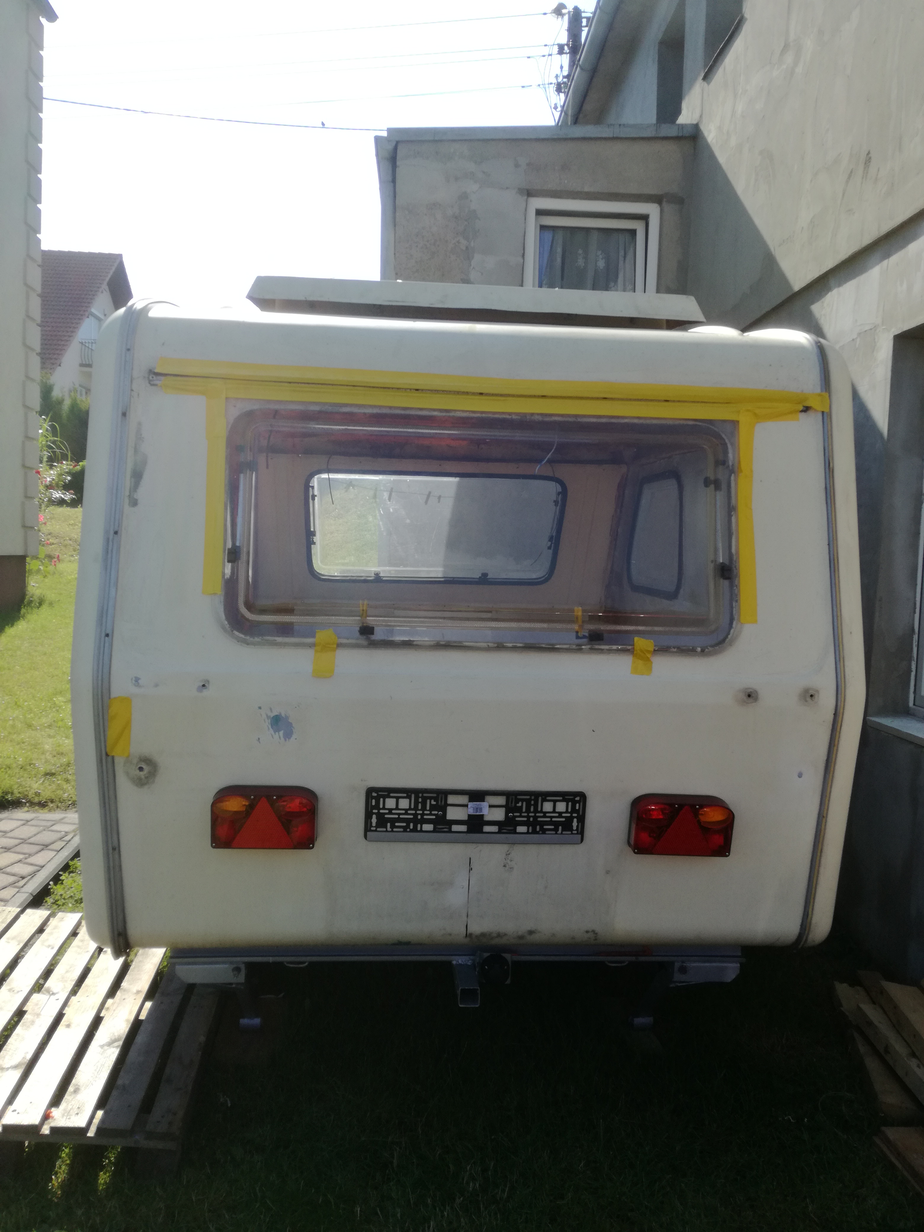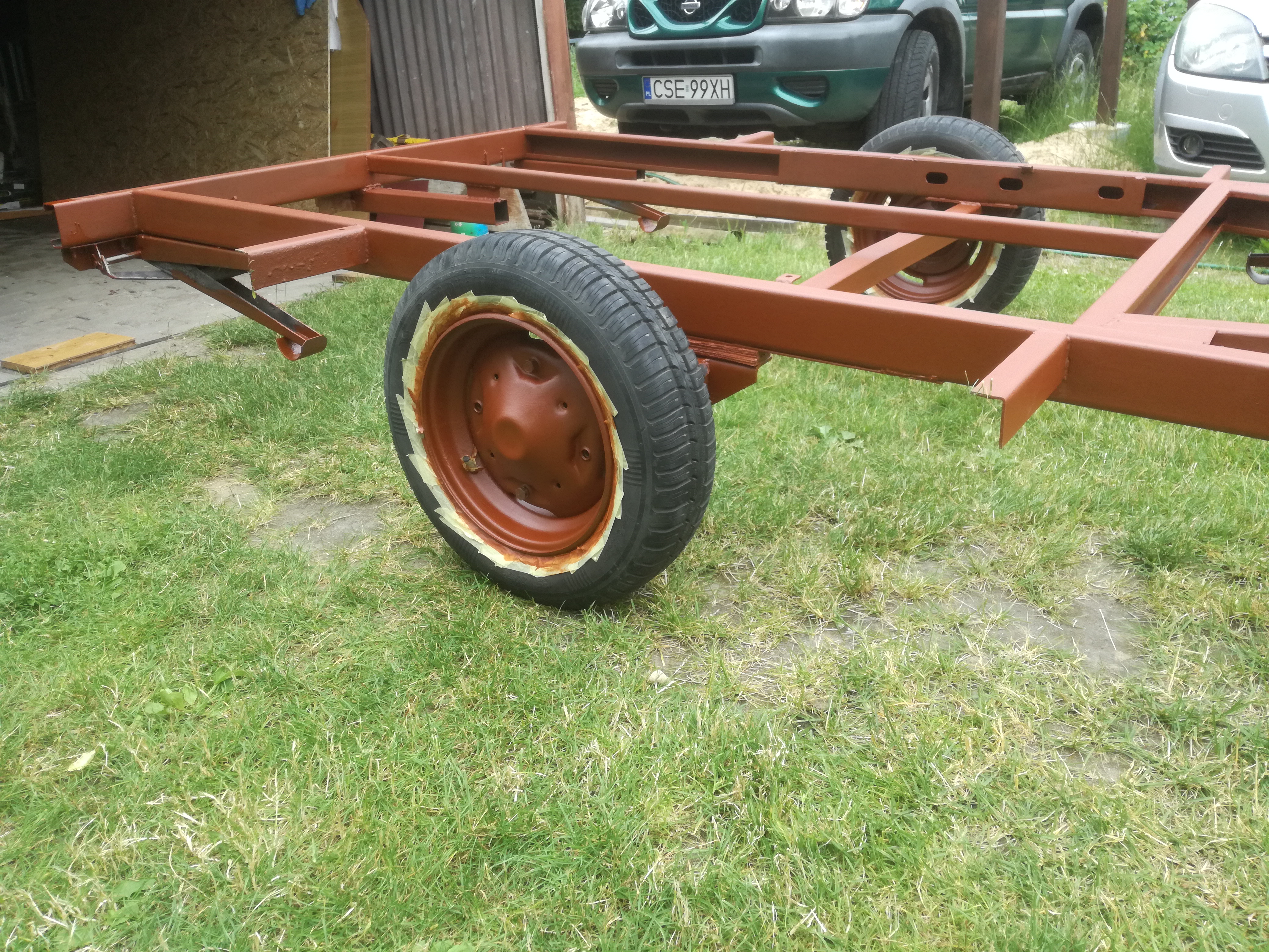 Piaskowanie ukazało zdrową rame bez żadnych pęknięć przerdzewien itp. Wiec została pomalowana farbą podkladowa i wierzchnią oraz wszystkie katy zabezpieczone ową konserwacją samochodową. No i montaż budy do ramy gdyz zostala odwrócona zajelo to troche czasu by byla na środku. No i podloga z osb 10mm i śruby zamkowe przykrecone i jest znow jedna całość. Potem przyszedl czas na okablowanie oświetlenie zewnętrzne i wewnetrzne. Na zewnatrz nowe lampy zespolone oraz dodatkowa lampa już led do oświetlenia przedsionka oraz wewnątrz na cztery led 12V w oprawie sufitowej po dwie w półkach przy otwieranych oknach.