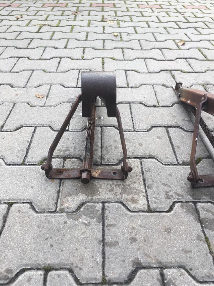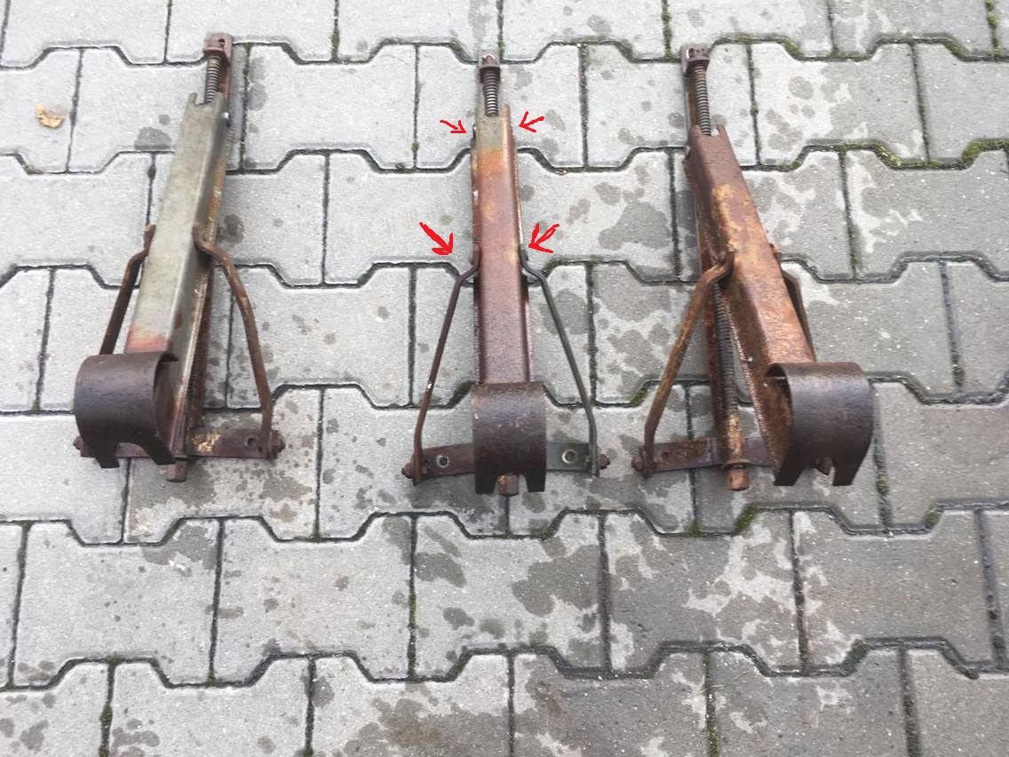 Dziś zdemontowałem podpory. Jednej brakuje. Wszystkie trzy są pokryte rdzą ale bez większych wżerów. Niestety jedna z tych trzech jest krzywa: