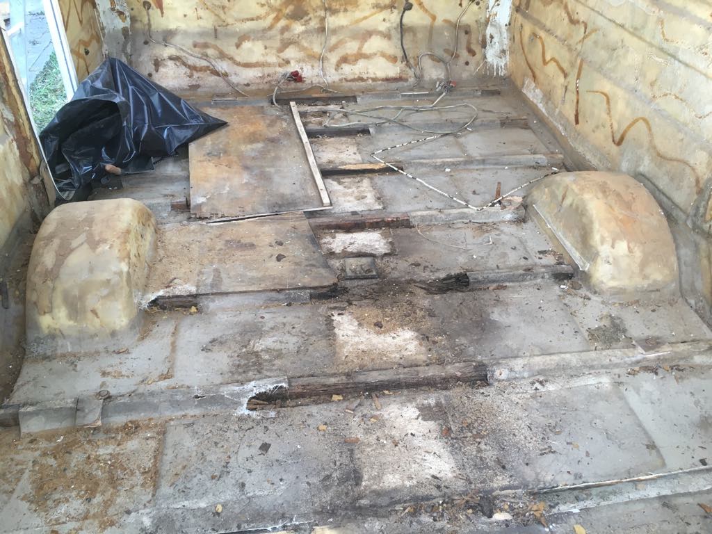 Podczas zrywania starej podłogi okazało się, że po obwodzie była ona przyklejona włóknem szklanym do ścian przyczepy. Nie wiem czy tak było oryginalnie. I tu powstaje pytanie do tych co wymieniali podłogę, czy sklejaliście podłoge z ścianami? Jaki odstęp zachować pomiędzy ścianą budki a podłogą?