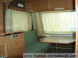 Przyczepa kupiona w ładnym stanie. Typową wadą była odchodząca tapicerka z sufitu. Na ścianach trzymała się dobrze, jednak podczas transportu przyczepy - ponad 500km - ściany zaczęły się sypać. Postanowiłem zrobić remont. Tak przyczepa wyglądała w dniu zakupu.