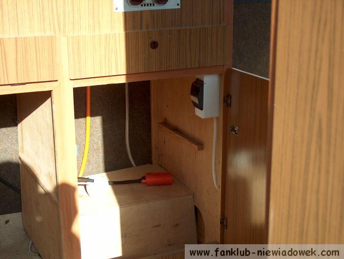 Remont dobiega końca. Brak jeszcze firanek, zasłonek, poduszek, wstawionej lodówki i kilku innych... Zmodernizowałem instalację elektryczną. Bezpiecznik jest teraz w szafce a nie w łóżku, mam gniazdo zewnętrzne pod przyczepą, gniazdo do zasilania grzejnika w szafie. Zrobiłem ze sklejki osłony na nadkola - będzie można coś na nich postawić.