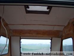 Na pierwszy ogień poszły meble. Demontaż niby sprawa prosta jednak prace skomplikowały wkręty na płaski śrubokręt dodatkowo wbijane młotkiem w fabryce. Odkręcić po prostu męka. 2 wkręty wymagały rozwiercania i wycinania. Meble śmiało można wynieść przez drzwi, jednak dużą szafę i kuchenną musiałem wyciągać oknem. Jeśli chodzi o dużą szafe trzeba przesunąć ją do szyber-dachu i tylko taki sposób da się ją położyć. Po wyniesieniu mebli zdarłem starą tapicerkę, resztki gąbki zdrapałem zdzierakiem do farb i zmyłem Nitro. Najgorszy był sufit, cały w silikonie, którym to podklejał tapicerkę poprzedni właściciel.