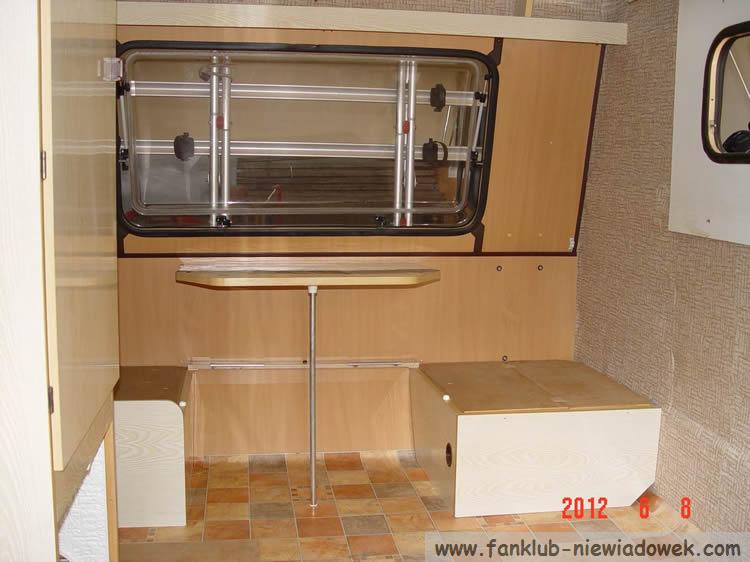 Pomimo faktu, że przyczepa była użytkowana na wyjazdach dopiero od czterech lat, a produkcja jej datowana na 1990 rok, podsufitka była zniszczona i stara - powodem według mnie jest zastosowany przez Niewiadów klej lub jakość mikrogąbki.