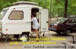 Mieszkam w Montrealu i od 20 lat jestem wlascicielem "Niewiadówki". Z pewnością przejechała już ona około 150 000 km. Dwa razy w Meksyku, chyba 5 razy w Kaliforni, raz na zachodzie Kanady (Banff, Jasper), 5 lub 6 razy na Florydzie nie licząc wielu, wielu wypadów do USA i w Kanadzie. Holuje ją samochodem 6 cyl, 3500 cc, 265 km. Kilkakrotnie holowałem ją autem 4 cyl, 2200 cc, 147 km, ale w Górach Skalistych nie było łatwo, szczególnie powyżej 10 000 stop wysokości. |