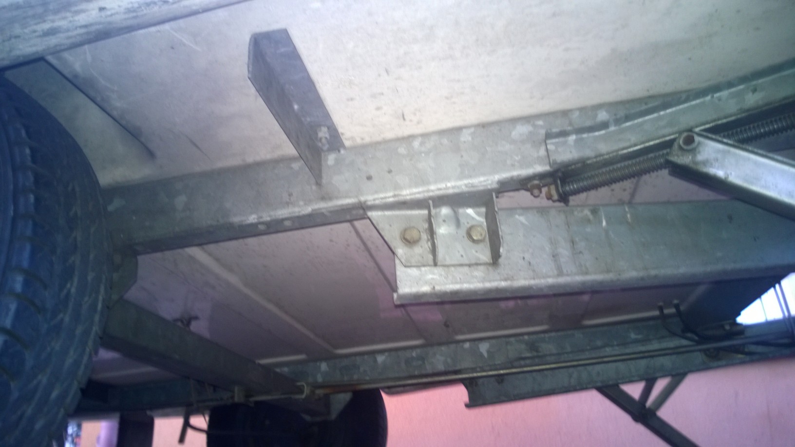 A jak to wygląda od spodu przyczepki. Czy przy takim ustawieniu korpusu trumy i palnika, nie trafi się z dziurą na tą poprzeczną belkę ramy?