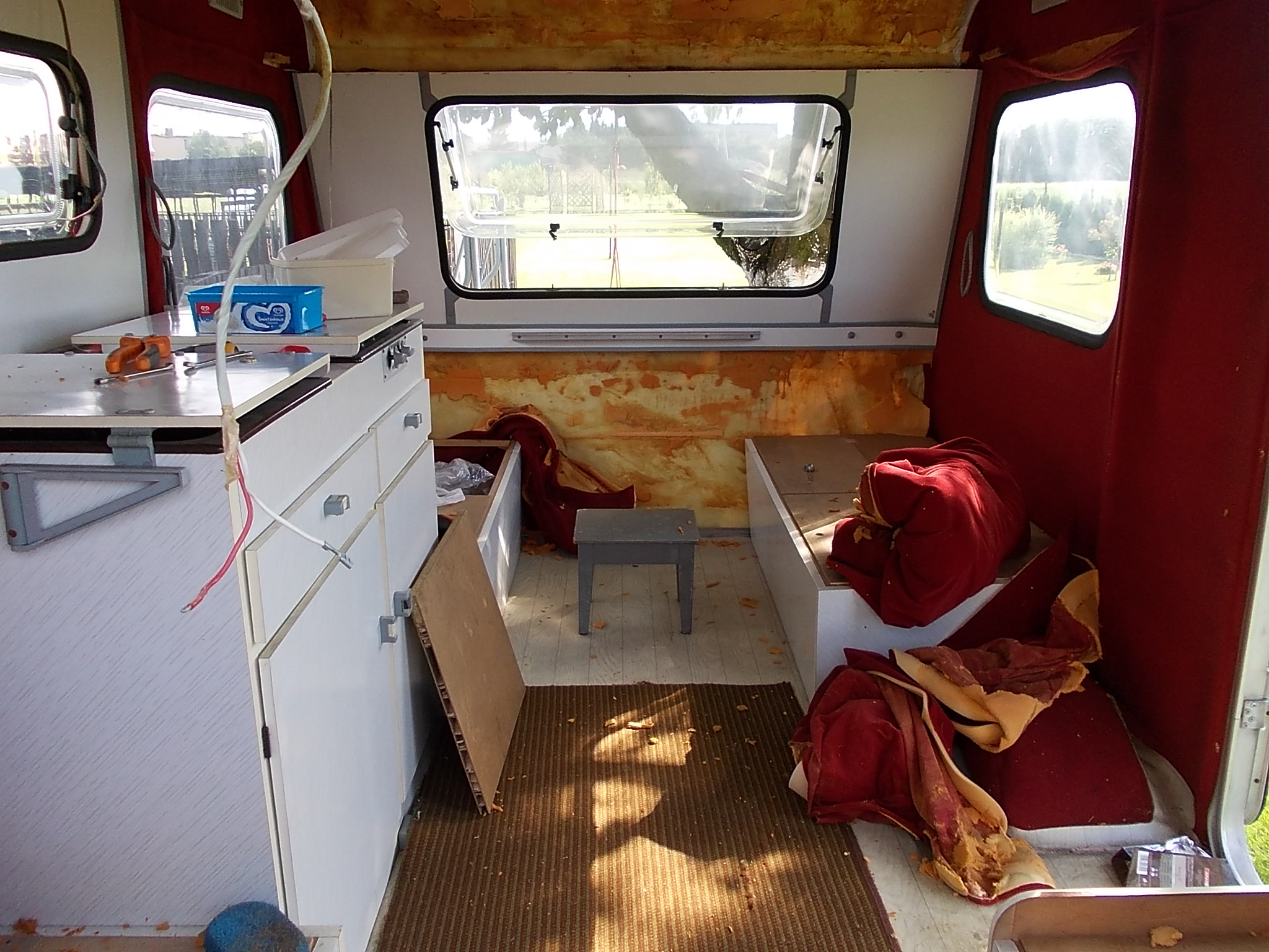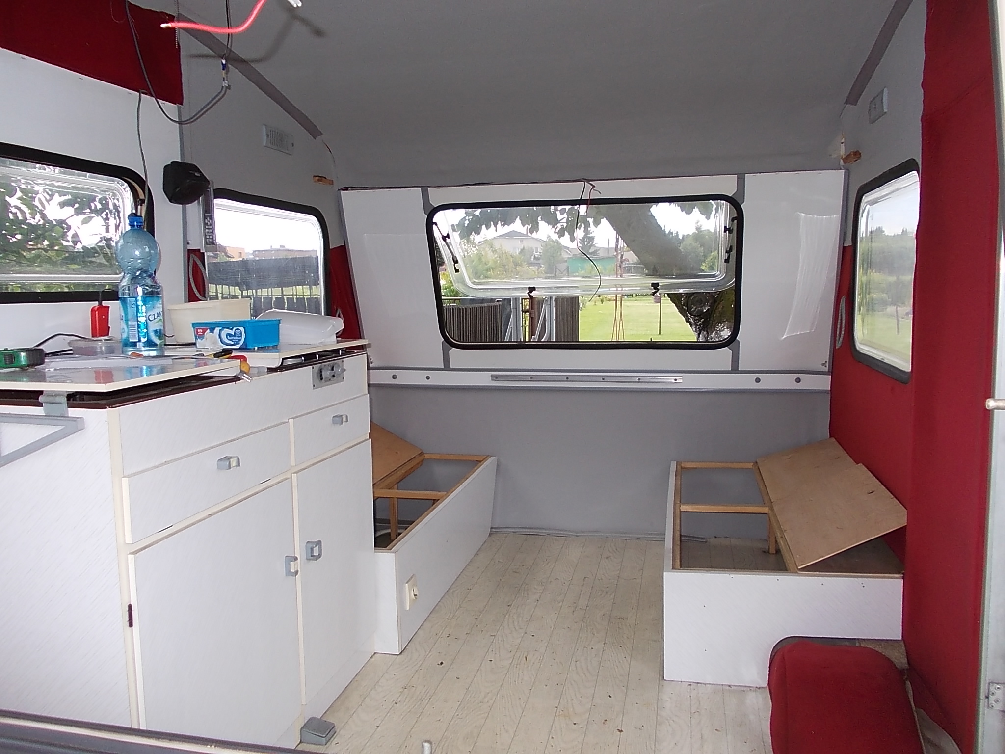 Witam wszystkich!To mój pierwszy dzień na forum,a więc po kolei.Choć niewiadówka w mojej rodzinie jest od nowości to jednak moja przygoda z nią zaczęła się w zeszłym roku.W latach 90' była taka loteria fantowa która zwała się Teletombola i w tej loterii przyczepkę wygrał mój wujek;jechał po nią do Warszawy.Po kilku latach sprzedał ją rodzicom a w zeszłym roku od rodziców kupiłem ją JA:) Aby z rodzinką zakosztować wczasów musiałem w niej zrobić mały remont z uwagi na trzymającą się już tylko na szafkach tapicerkę.Materiał kupiłem,wykleiłem,dodałem radio,oświetlenie 230V + przedłużacz,wymieniłem kuchenkę na turystyczną bo oryginalna nie działała.W tym roku dorzucę ledy i założę alarm.To by było na tyle na początek.Na to forum trafiłem przypadkowo 2 miesiące temu i żałuję że nie wcześniej bo dokonałbym kilku ulepszeń w trakcie remontu no ale cóż,trudno.Wstawiam kilka fotek enki;po ulepszeniu jej w lecie wstawię kolejne,pozdrawiam.