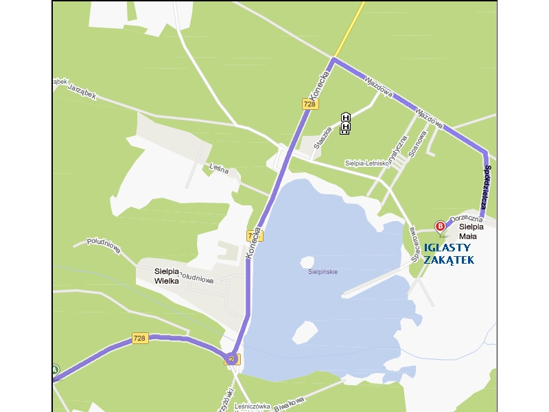 Mapka z dojazdem do Iglastego Zakątka na dole w załączniku. Zapewne większość z Was będzie wjeżdżać do Sielpii od strony Drogi Krajowej 74. Z tej właśnie drogi zjechać należy na skrzyżowaniu w Drogę Wojewódzką 728. Po dojechaniu do ronda zaznaczonego na mapce jedziemy wzdłuż Jeziora widząc je po prawej stronie. Mijamy Jezioro, ale jedziemy dalej, aż do ulicy Wjazdowej (Spacerowa to deptak). Dalej jedziemy zgodnie z trasą na mapce, należy przy tym zwracać uwagę na drogowskazy prowadzące na kemping Iglasty Zakątek, które zaprowadzą nas do samego celu. Wkrótce postaram się jeszcze o dodatkowe zdjęcia dla lepszego zobrazowania.