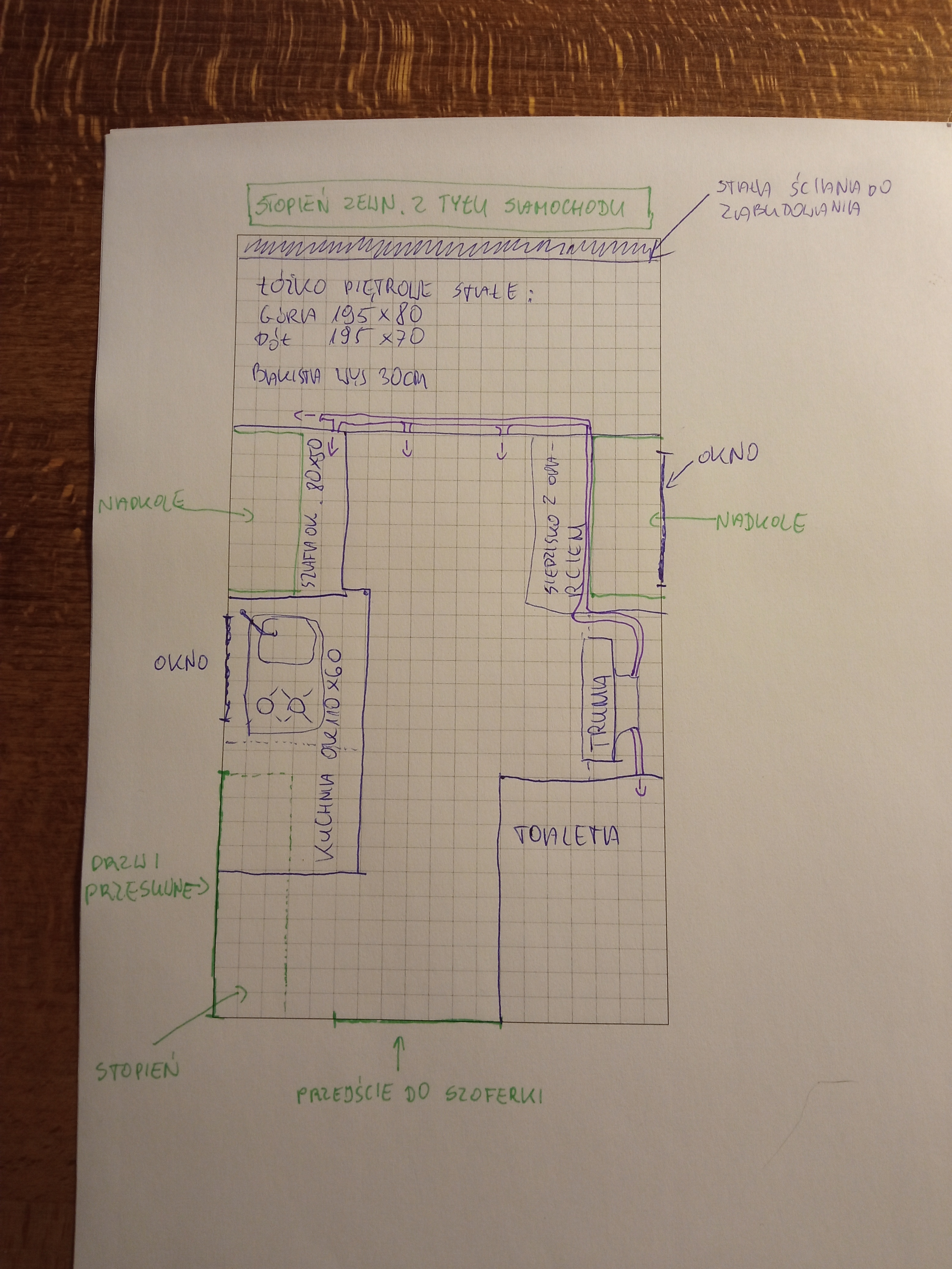 Żeby pokazywać co dzieje się dalej, wklejam ostateczny plan wnętrza. Bardzo proszę kreślarzy, inżynierów i techników starej daty, aby nie oburzali się na odręczność szkicu - nie umiem w rysunek techniczny, zależało mi tu na praktyczności.