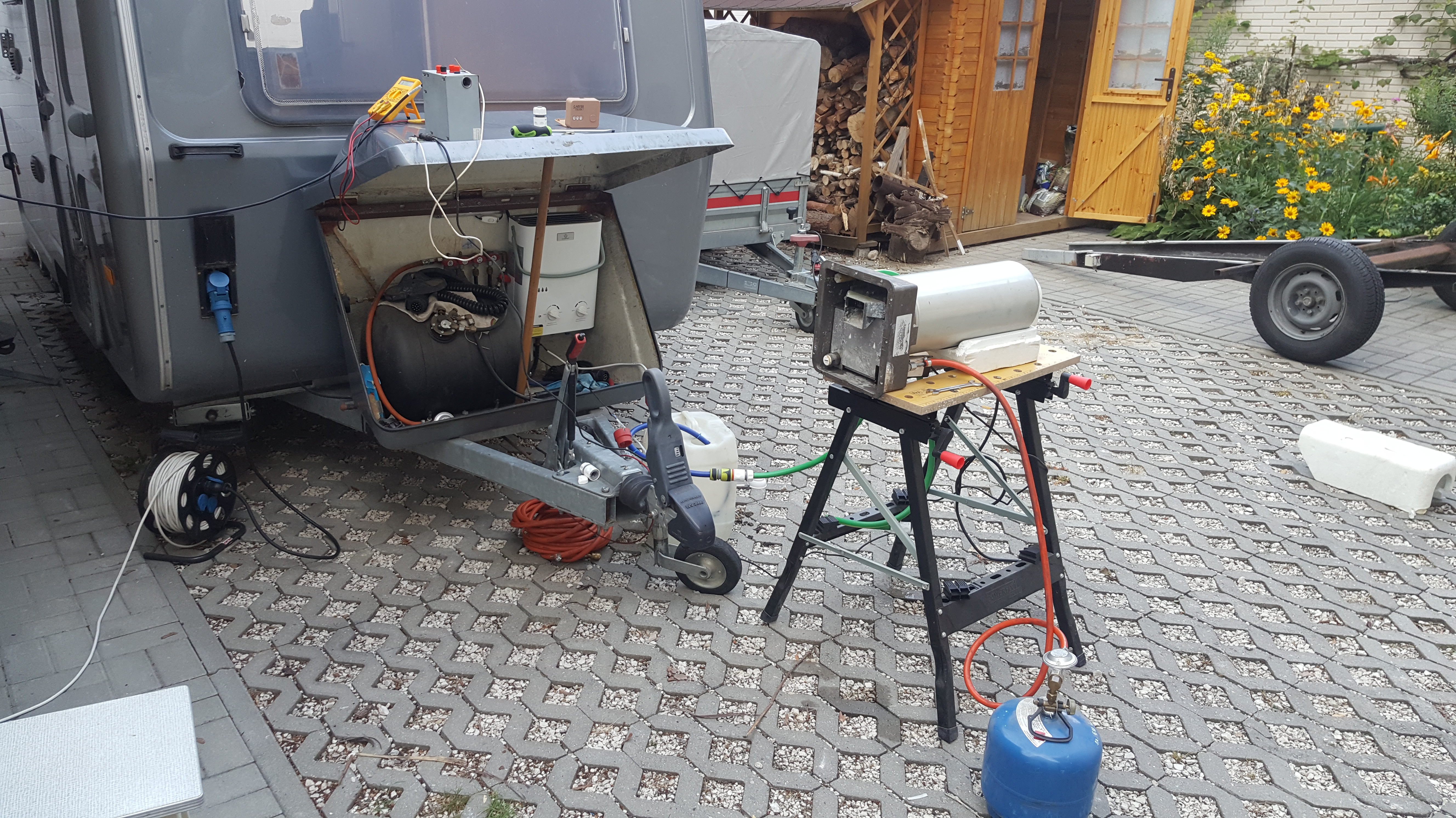 Bojler przed wyjazdem na ostatni weekend udało się podłączyć tylko na 230V. Gaz jest plan podłączyć w ten weekend i przy okazji też szybkozłączkę do grilla.