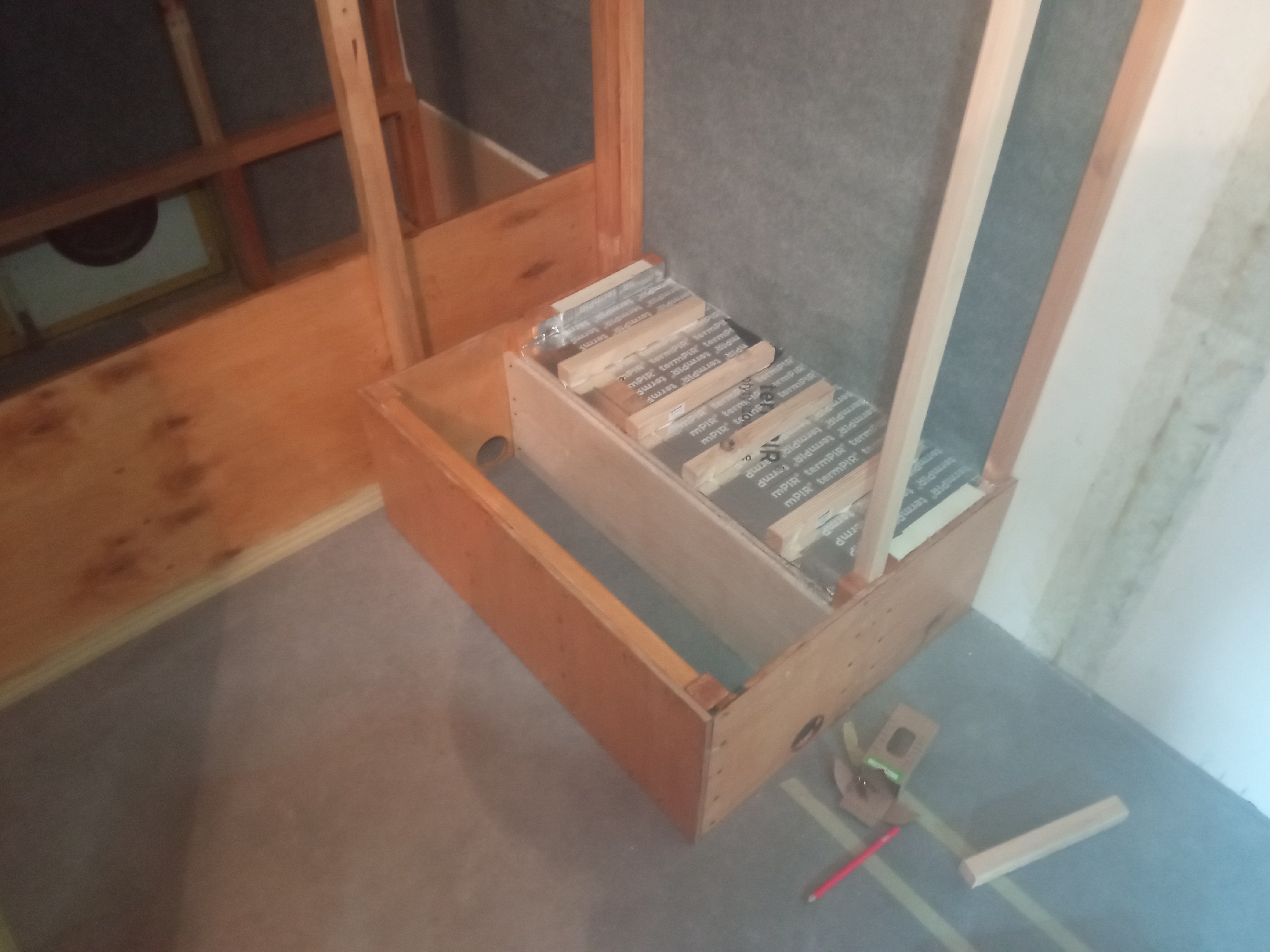 Budowa siedziska naprzeciwko szafy oraz izolacja nadkola
