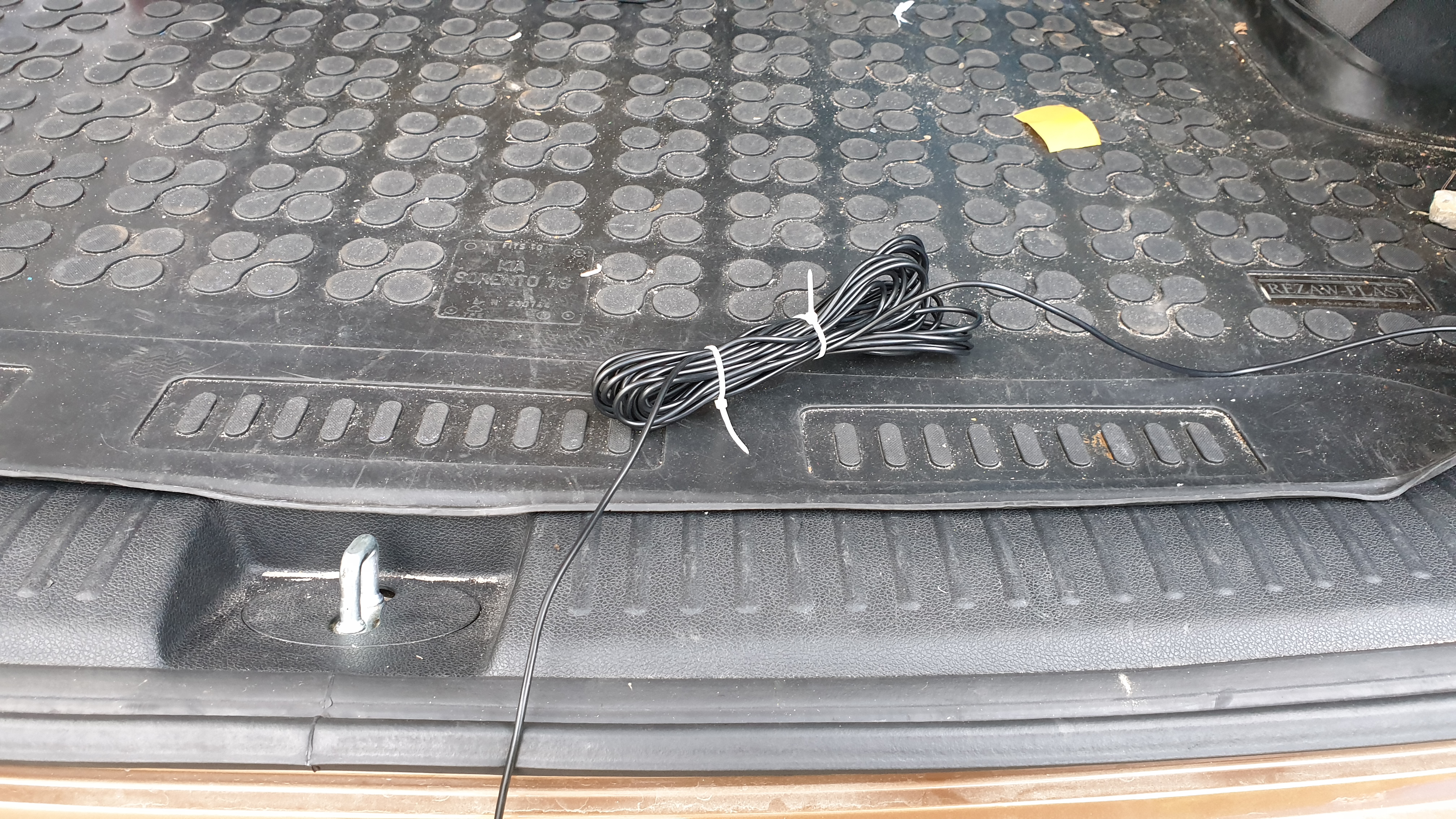 Sprzedawca się walnął i zamiast przysłać zamówione 15m wysłał 20m, ale dzięki temu mam w bagażniku bambułkę zabezpieczającą przed wyciągnięciem kabla z bagażnika.