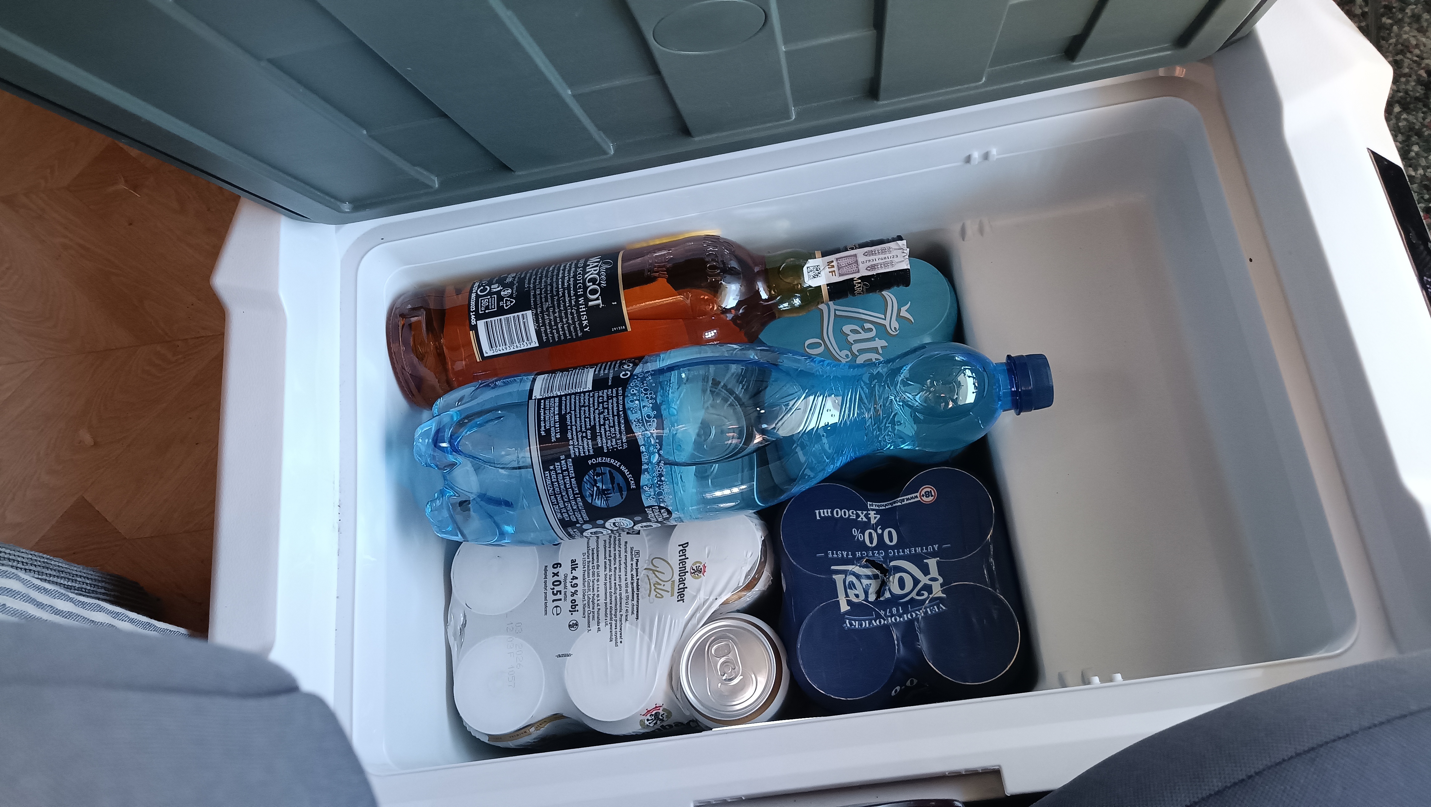 Najważniejsze na czym mi zależało to żeby wiedzieć ile prądu ciągnie dodatkowa lodówka w trybie zamrażarki, a właściwie jaki jest bilans ładowania i poboru więc postanowiłem ją podłączyć pod wyjście Load z Victrona. Dorobiłem więc porządne gniazdo 12V na grubych przewodach i podłączyłem lodówkę wczoraj koło 17-18 po południu. Lodówka oczywiście po mniej więcej godzinie zeszła do -20,