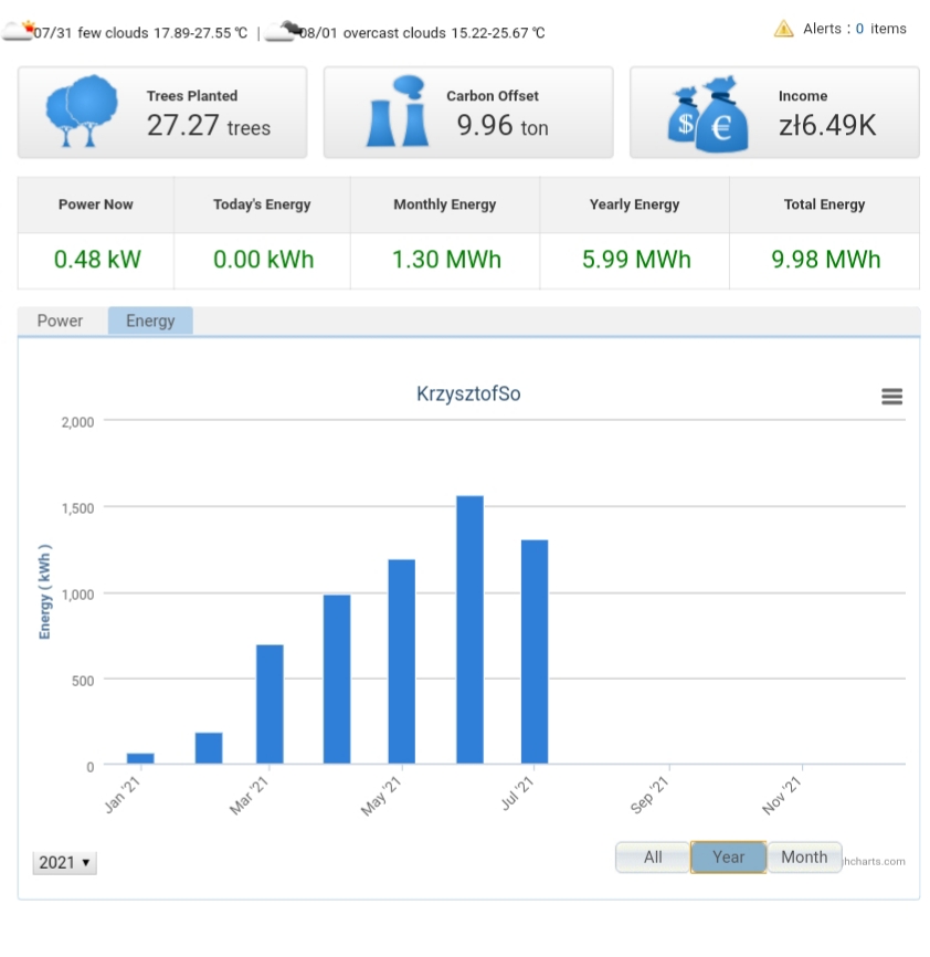 U mnie instalacja uruchomiona w marcu wyprodukowała już prawie 3300kw. Moc paneli 4,95kw Serafin bifacial inwerter fronius 4,5kw. Instalacja na południe brak zaciemnień.