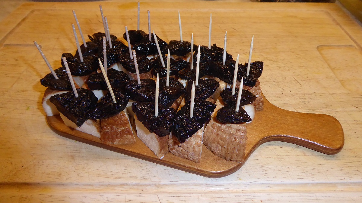 Proste koreczki z wędzonego serka i wędzonej śliwki. Super połączenie, jeśli wędzicie serki to spróbujcie.