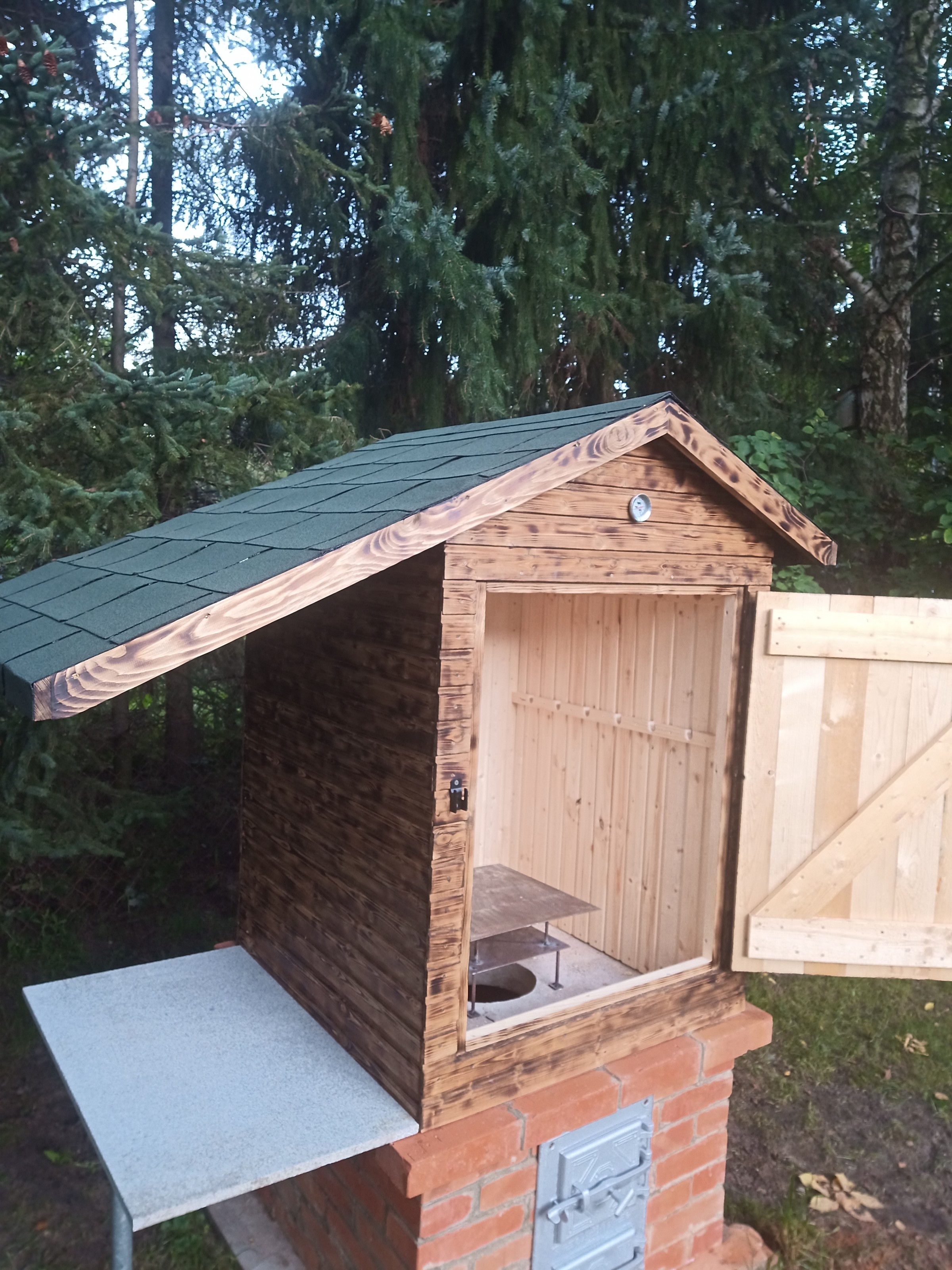 Odkąd zakupiliśmy dom wiedziałem, że prędzej czy później stanie w ogrodzie wędzarnia. Chciałem, żeby poza podstawową funkcją pełniła również rolę dekoracyjną naszej części "rekreacyjnej". Tak oto powstała wędzarnia. Poniżej krótka specyfikacja: