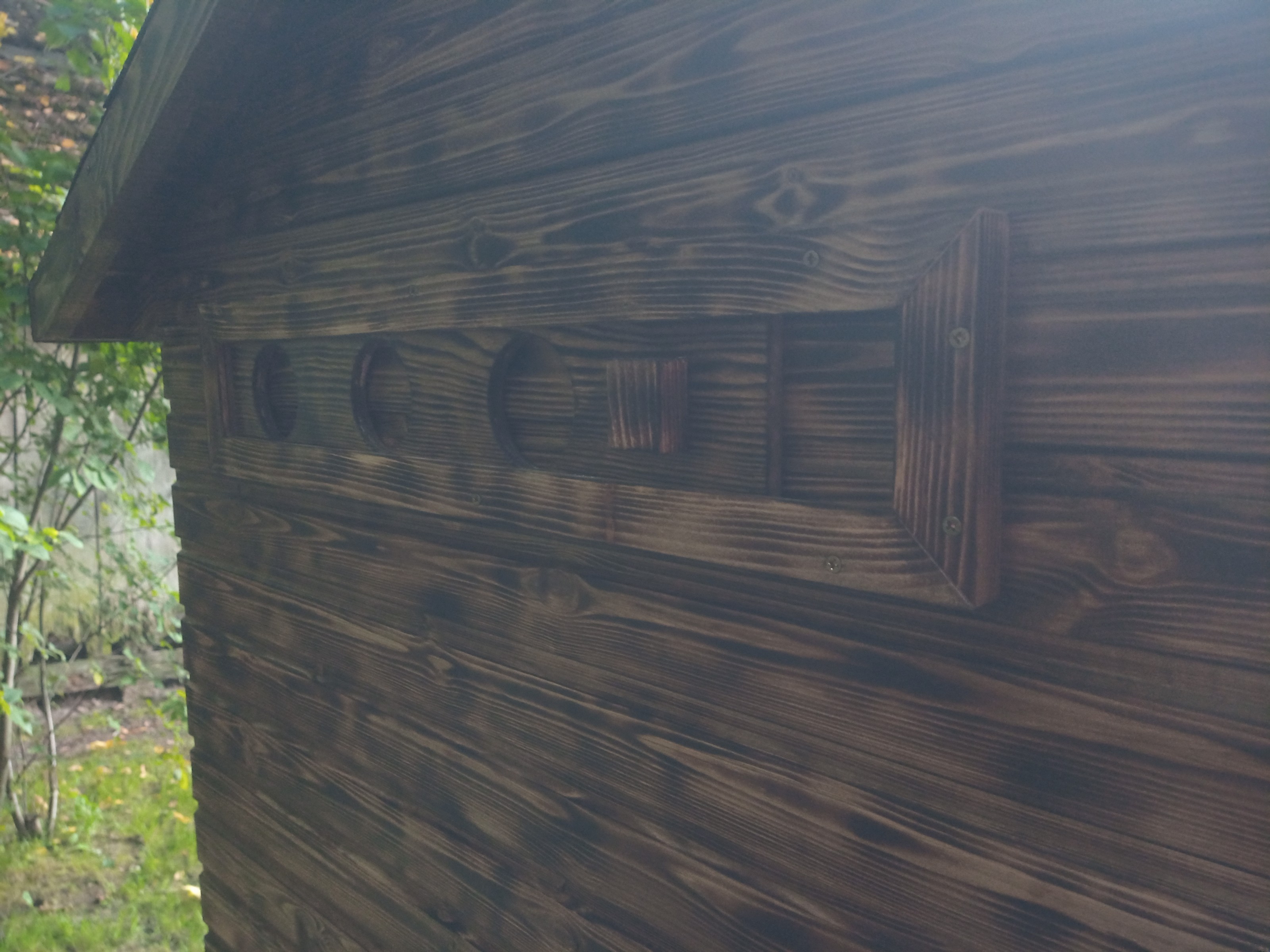 - Z zewnątrz opalona i zabezpieczona lazurą