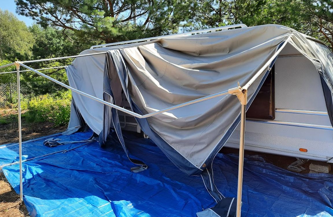 Byłem w trakcie zwijania całości, żeby wysuszyć przedsionek oraz naprawić uszkodzenia, tzn. wymienić pogiętą rurkę oraz połamane plastikowe elementy.