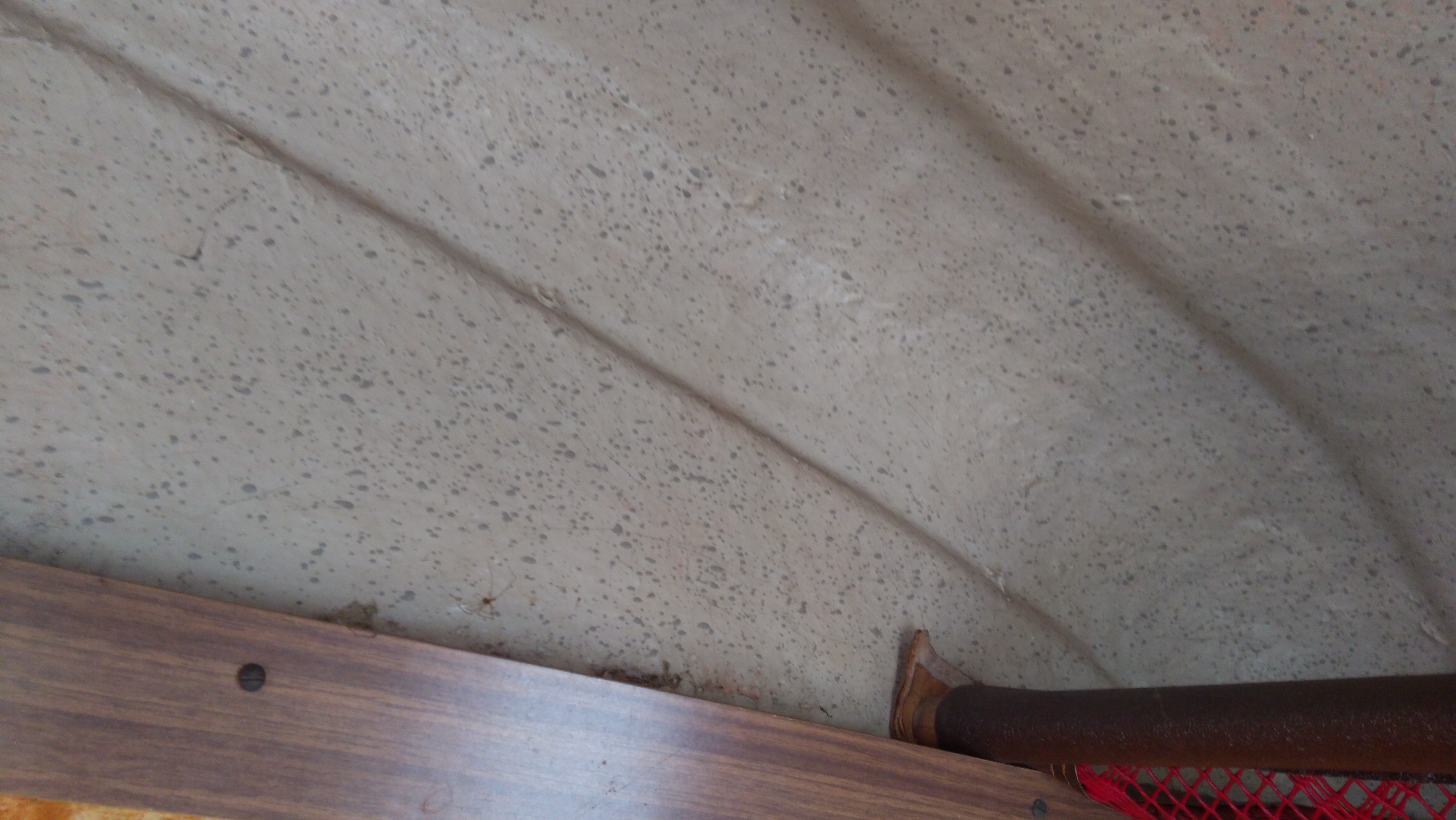 Gąbka zniknęła całkowicie a na suficie powyżej półek tapicerki nigdy nie było :-)