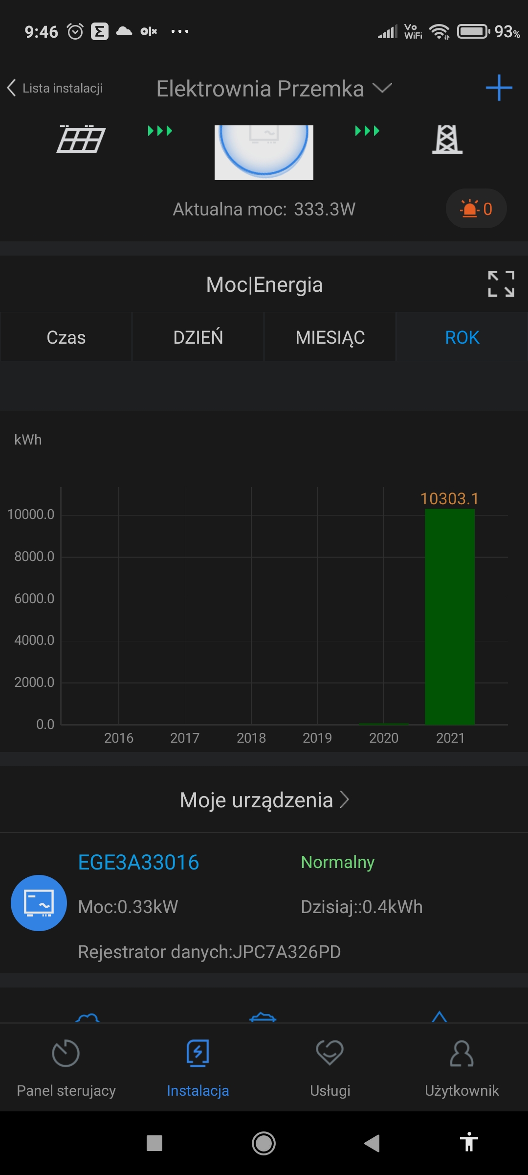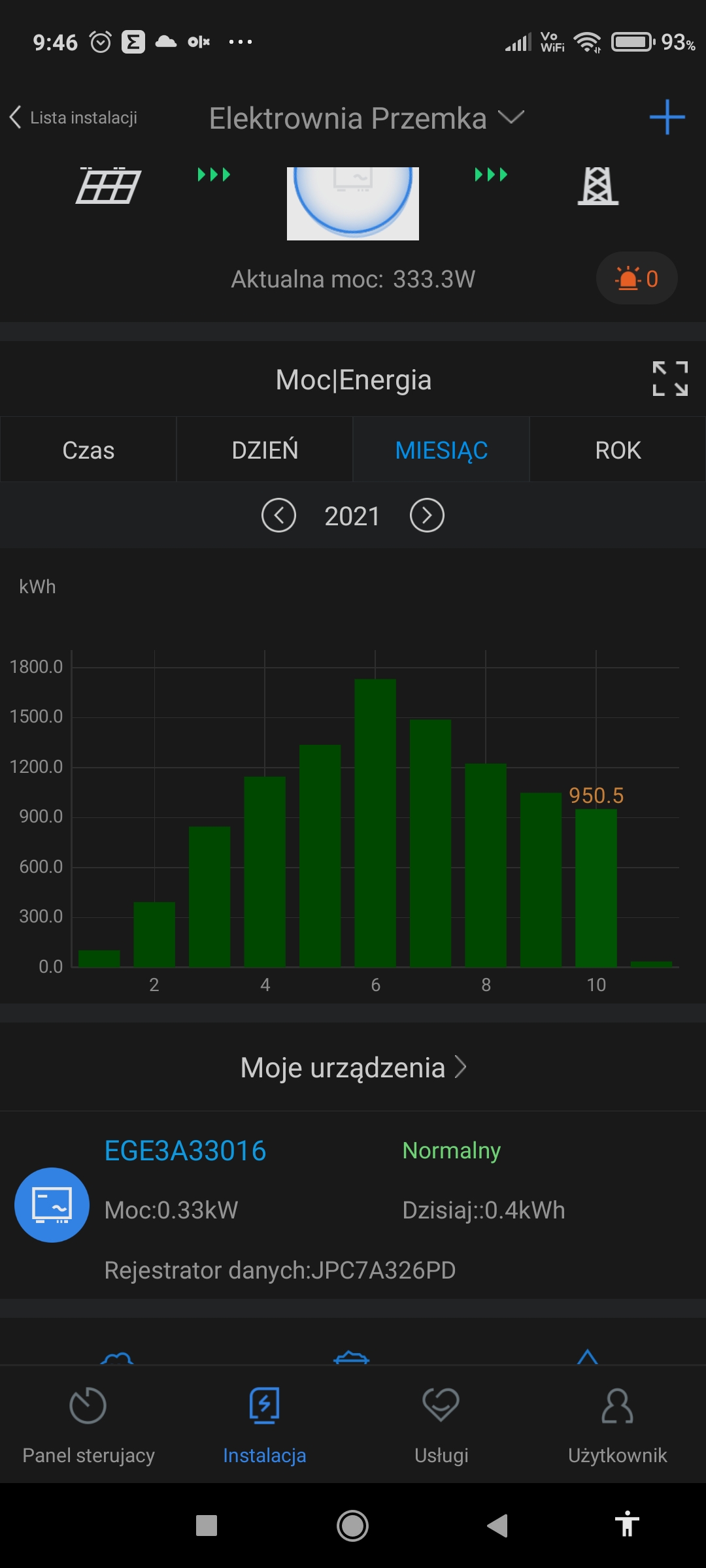 Dołączam do grona posiadaczy. Instalacja 9,90 kWp na falowniku takim jak Przemka. Dzisiaj nawet coś tam wbiło :)
