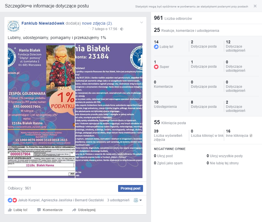 Dlatego dopiero teraz mogę podziękować tym, którzy postanowili nas wesprzeć.