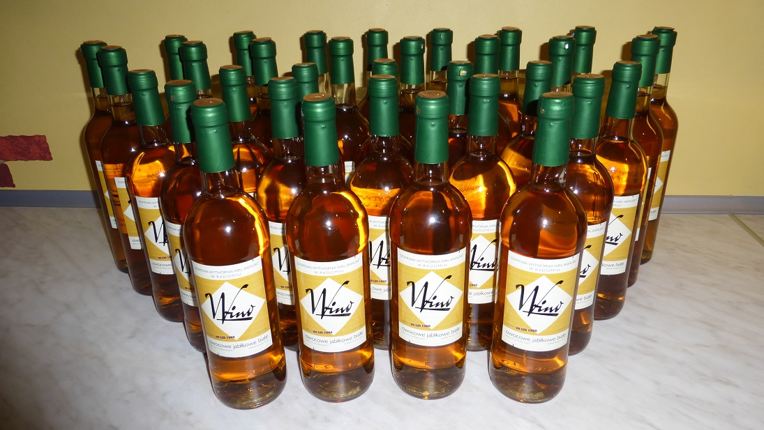Jest też w butlach wino z soku tłoczonego z jabłek, tego co kupuje się w kartonach wewnątrz z workiem z kranikiem.