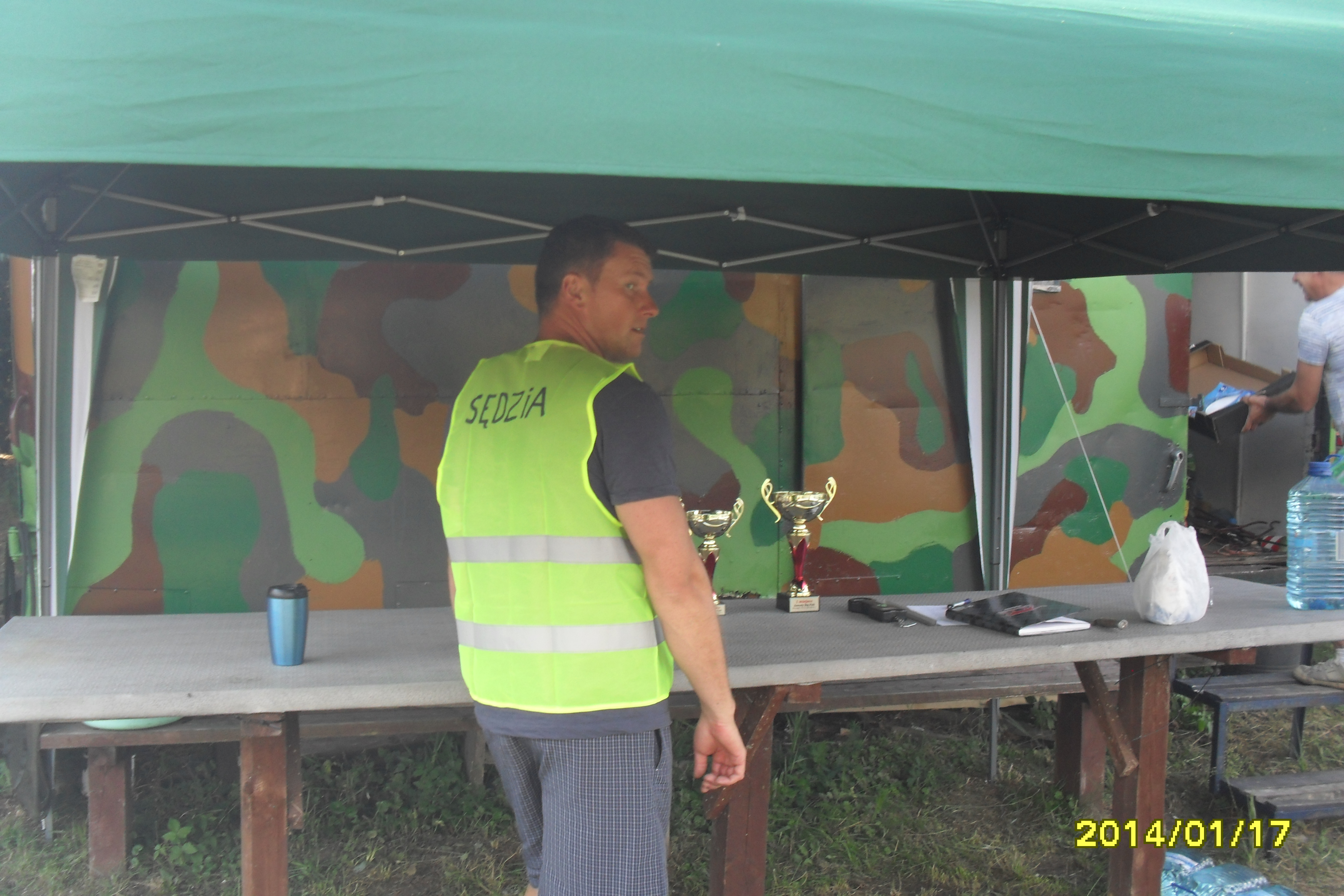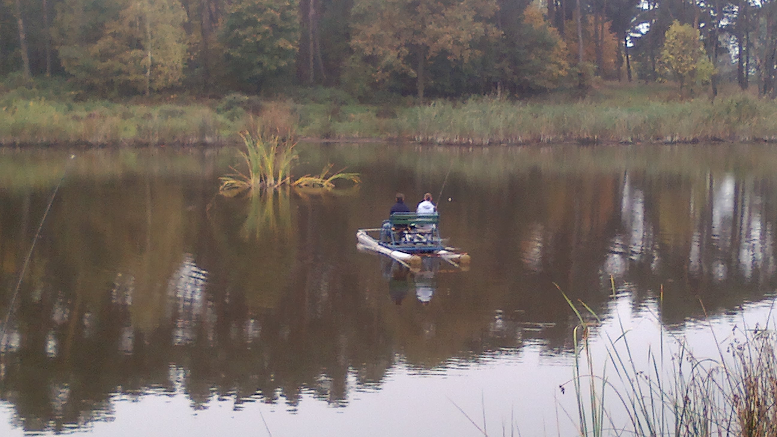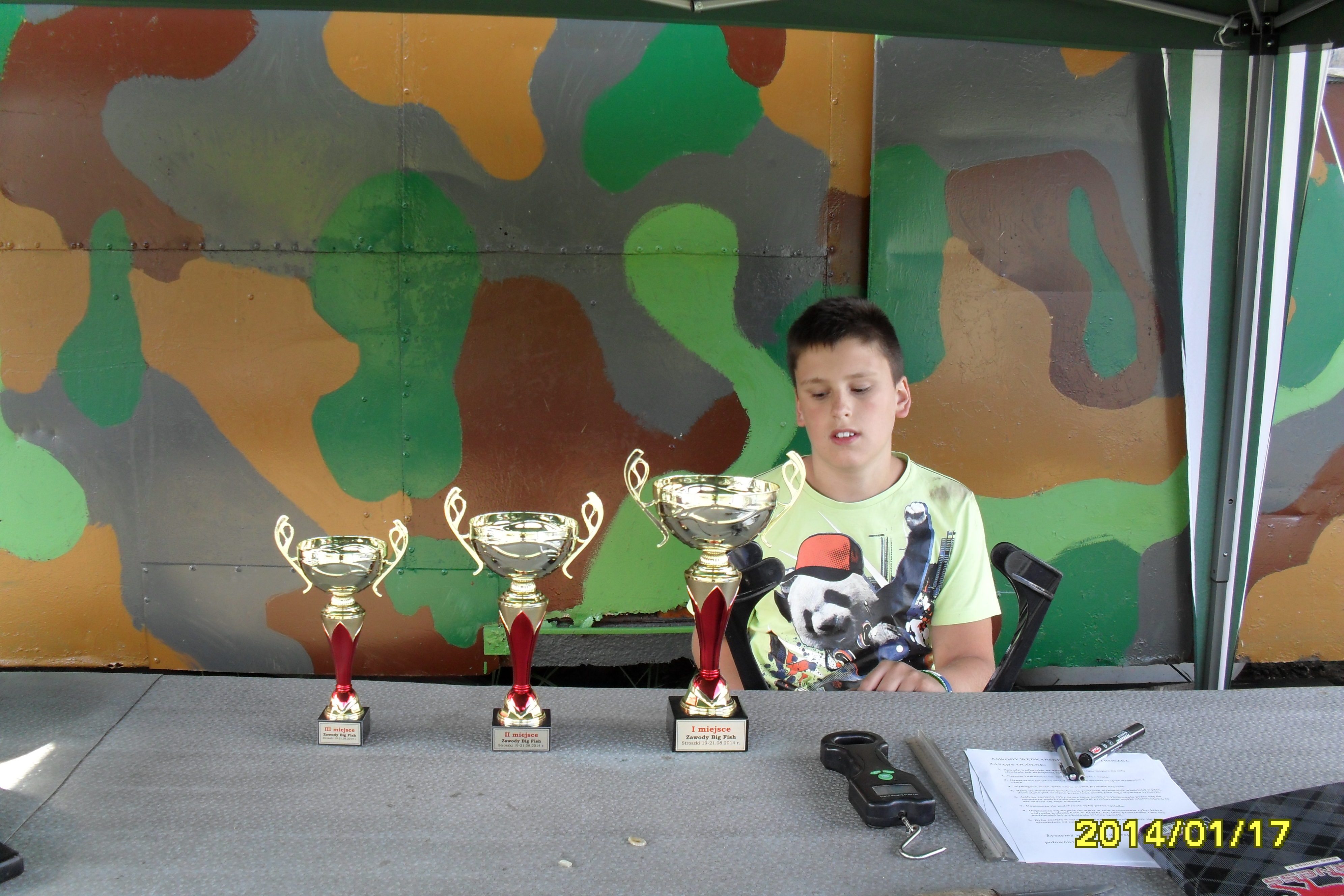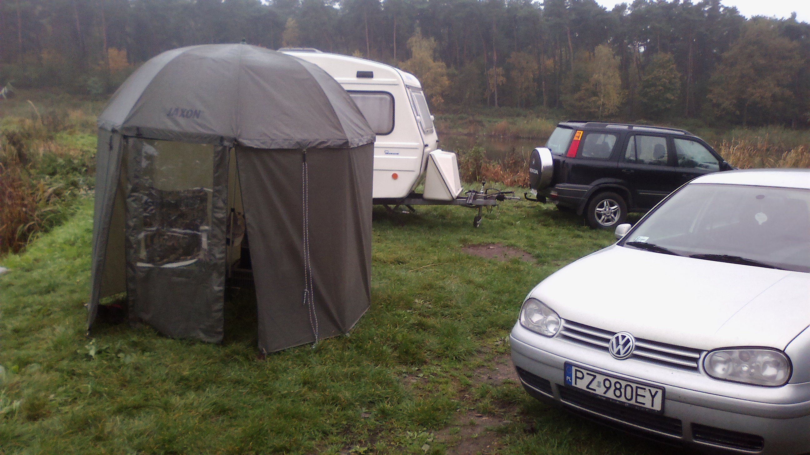Zawody trwają na te chwilę wygrywa karp 10 kg a na drugim karp 5,35 kg . Poznałem kolesia z cepką samoróbką . Koła od trabanta czy wartburga środek rozstaw jak w mojej ence . Poszukiwane kuchenka i zlew . Jakby ktoś chciał pomóc chłopakowi za drobną opłatą to jest chętny .Na pierwszym zdjęciu fajny pomysł na ruszt nad ogniskiem , regulacja łańcuszkiem i kierownica od jawki oczywiście z dzwonkiem oznajmiającym o gotowym żarciu .Całość wkładana w wbetonowaną rurę . Można obracać i w ten sposób nie trzeba obracać mięsa nad ogniem . Warte skopiowania !!! .Zapomniałem ustawić datę w aparacie