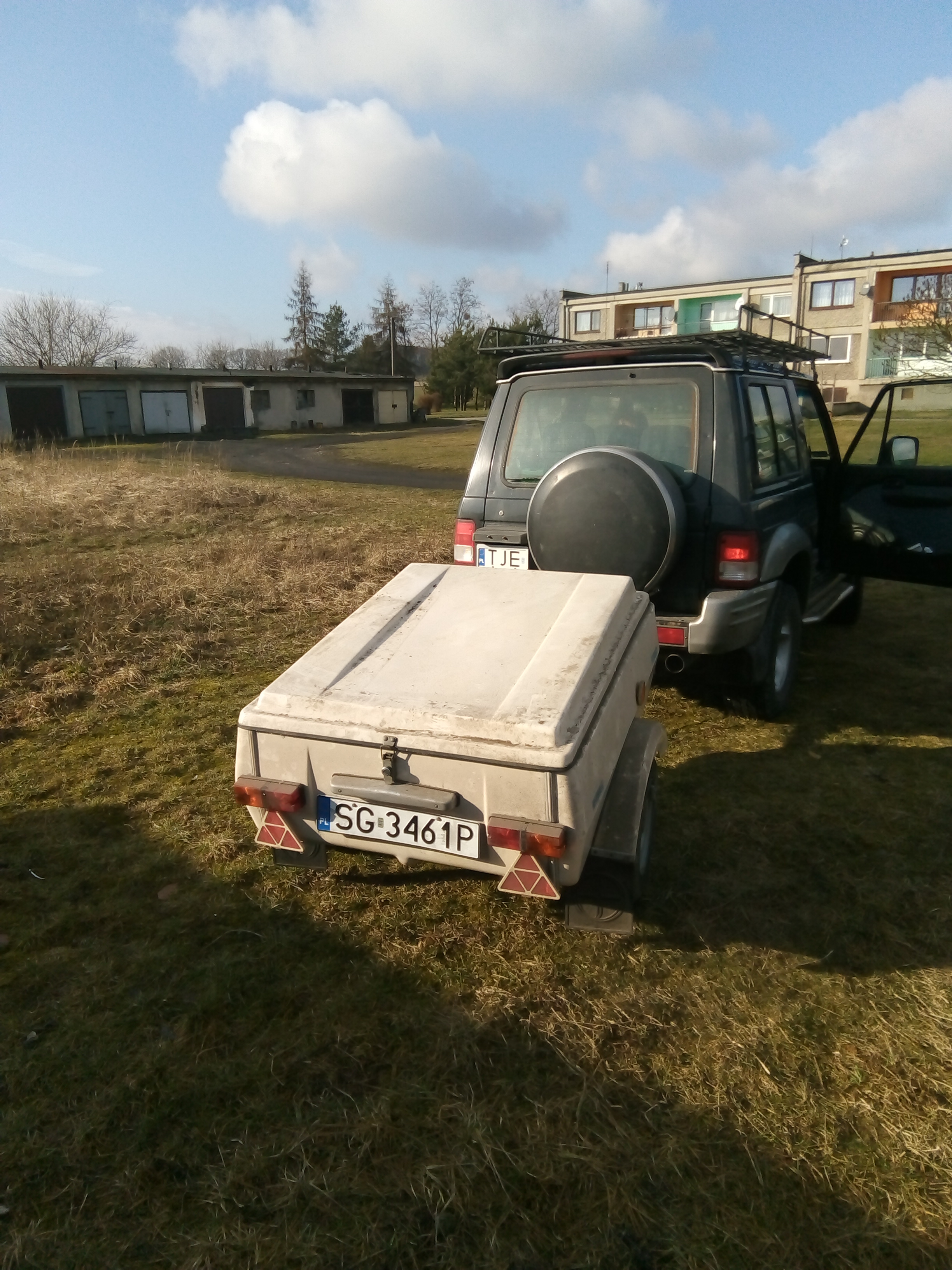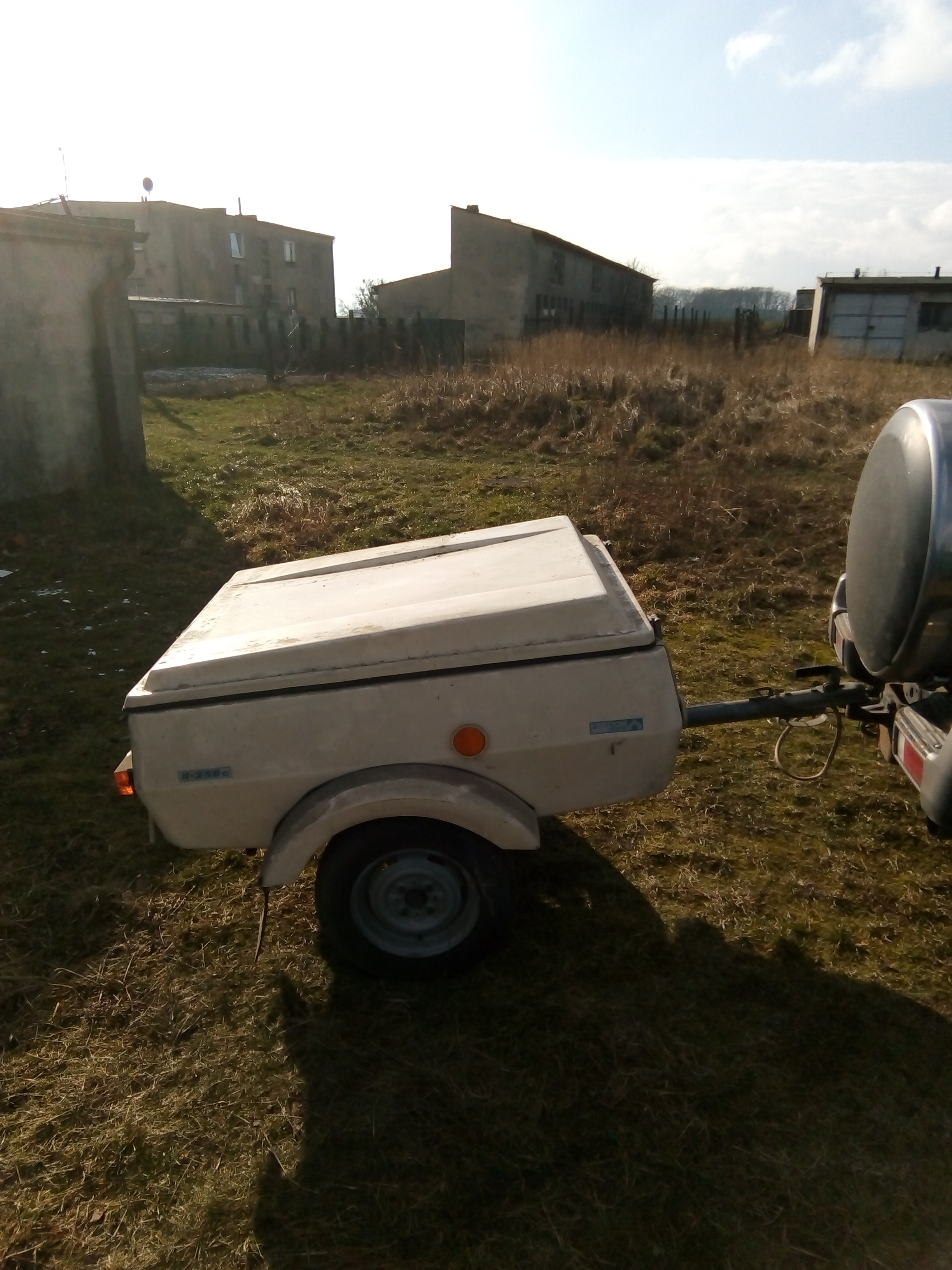 -tak, wiem,że wygląda koszmarnie za mustangiem.Ale będzie jeżdzić za multivanem, a tam jest ok.A poważnie, stan bdb, tylko brudna.Delikatne ubytki w podłodze, małe pajączki na klapie.Chyba się starzeję, bo mam ochotę ją wypucować i wstawić na salony