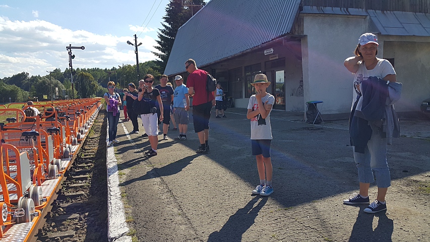 A myśmy pomykali drezynami. Fajnie było, ciekawe, czy pociąg też robi przystanek na ciasto?